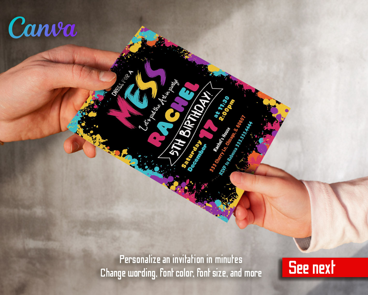 Printable Editable customizable Art Dress For A Mess birthday party invitation digital template. Instant download invite.