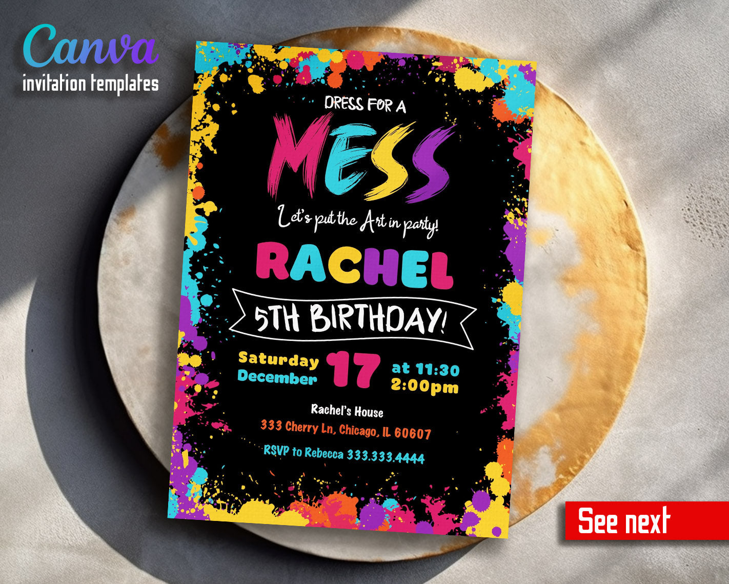 Related Tags: painting invitation, art party birthday, dress mess invite, art invitation, pottery paint party, pottery painting, editable invitation, birthday invitation, printable invitation, invite template, evite, girl birthday,