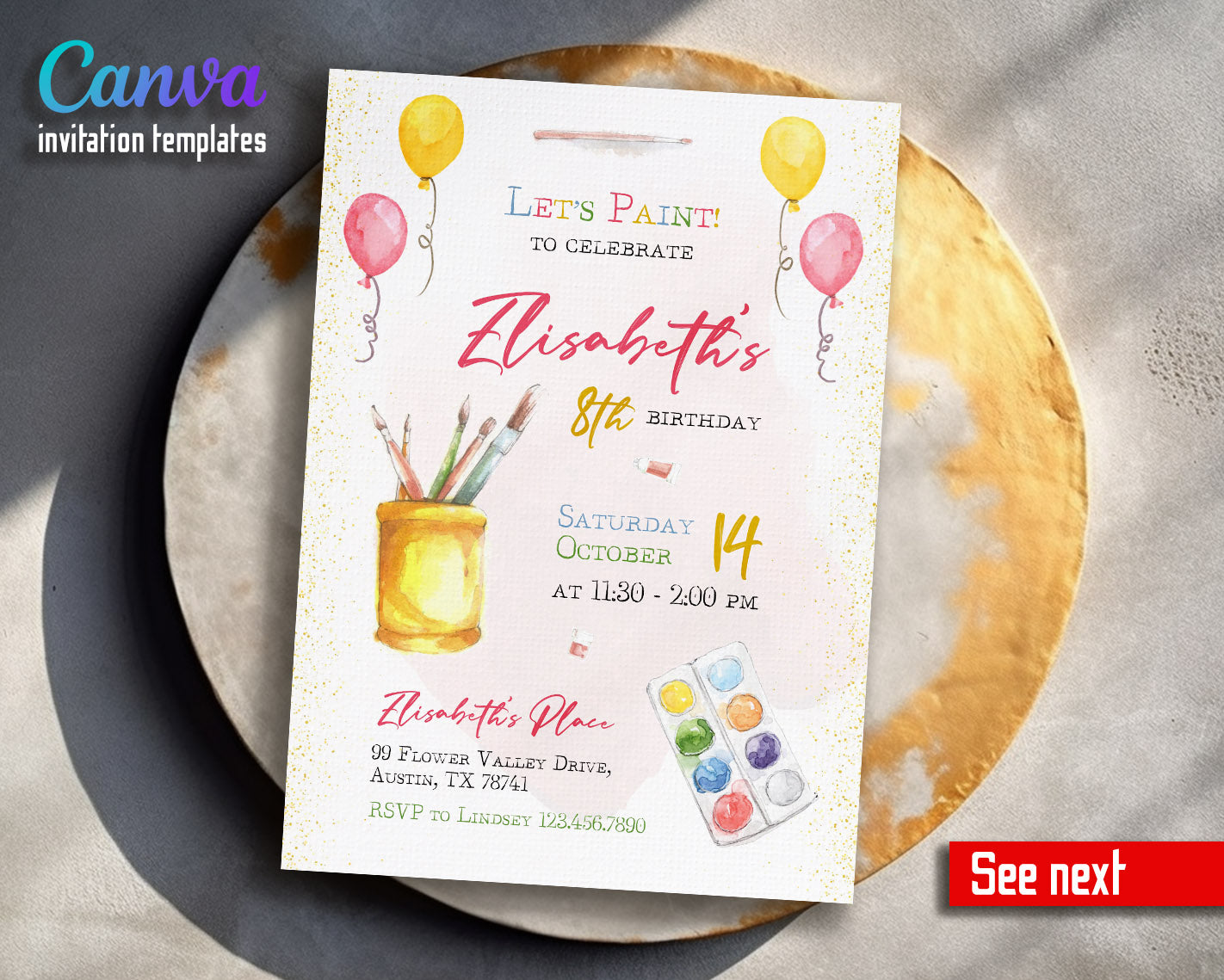 Printable Editable customizable Art Party birthday party invitation digital template. Instant download invite.