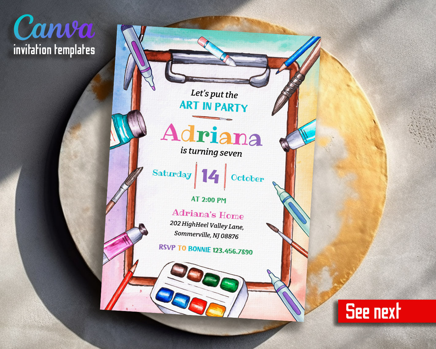 Printable Editable customizable Art Party birthday party invitation digital template. Instant download invite.