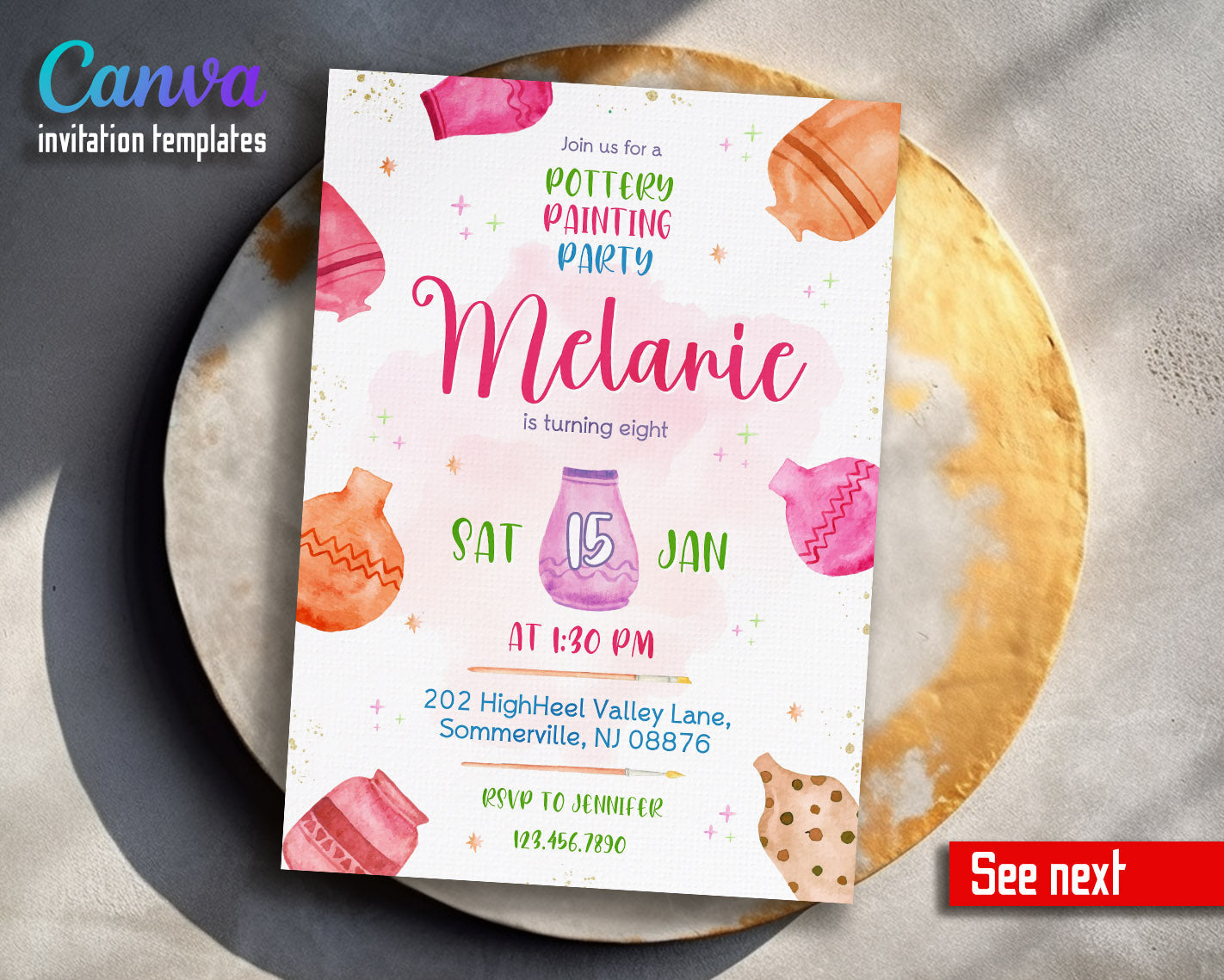 Printable Editable customizable Art Pottery birthday party invitation digital template. Instant download invite.