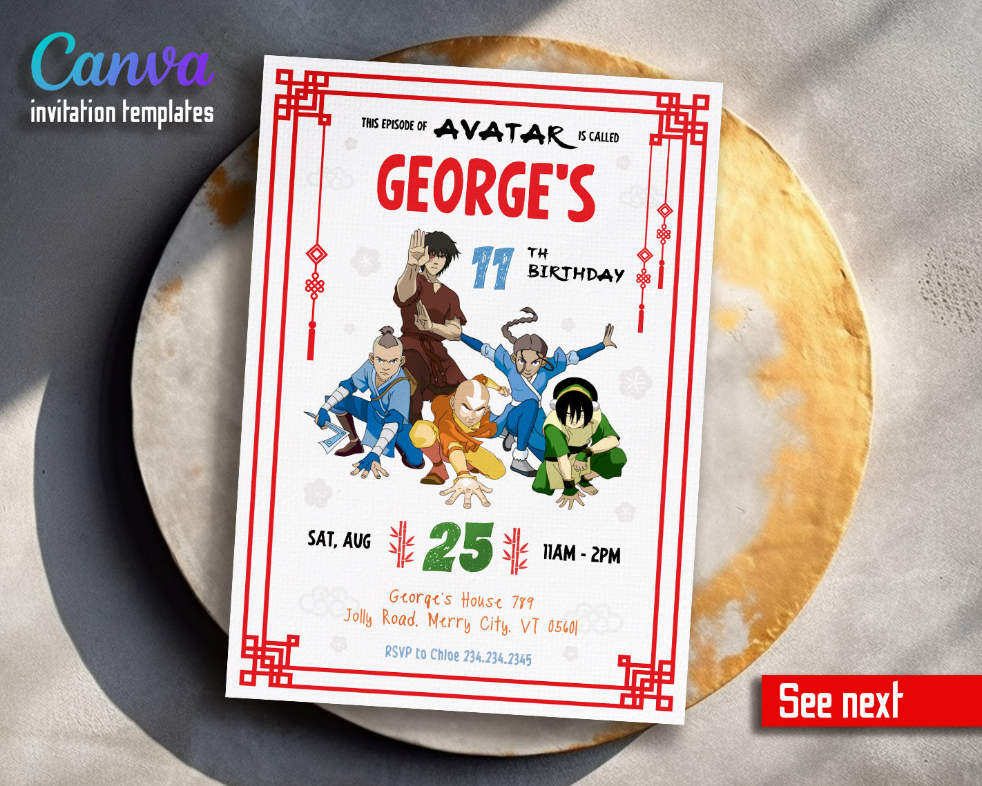 Related Tags: Avatar Airbender, Airbender invite, avatar invitation, anime party, boy girl birthday, Last Airbender bday, aang party, appa invitation, 1st 2nd 3rd bday, editable invitation, birthday invitation, printable invitation, invite template
