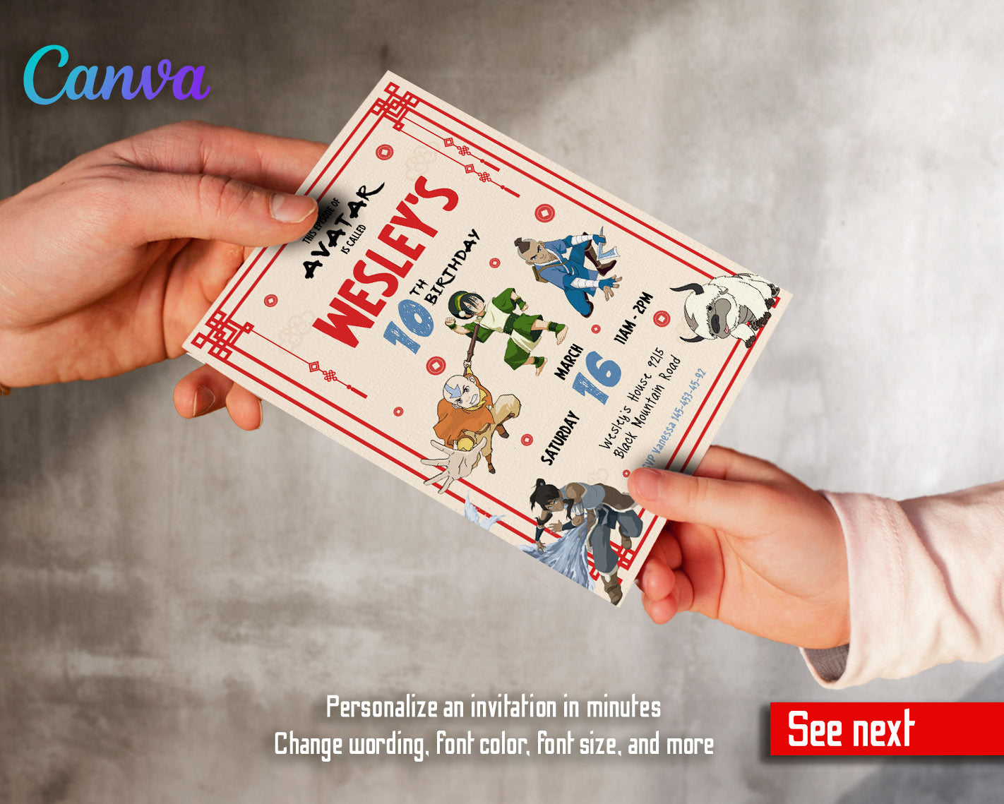 Printable Editable customizable Avatar The Last Airbender birthday party invitation digital template. Instant download invite.