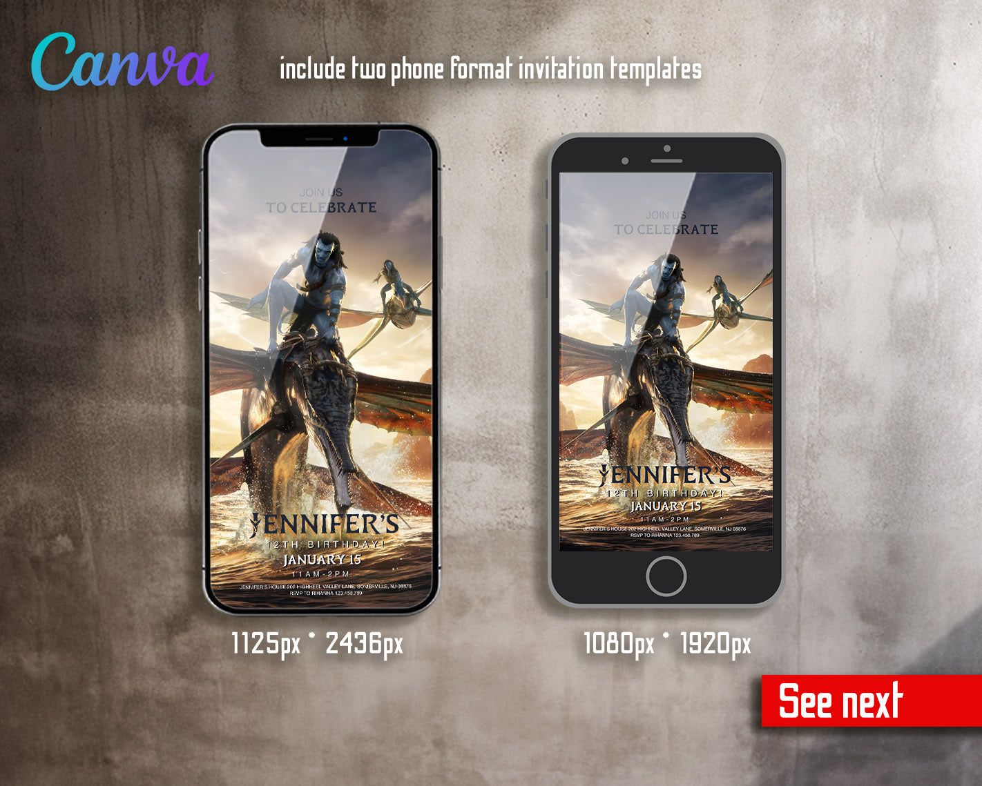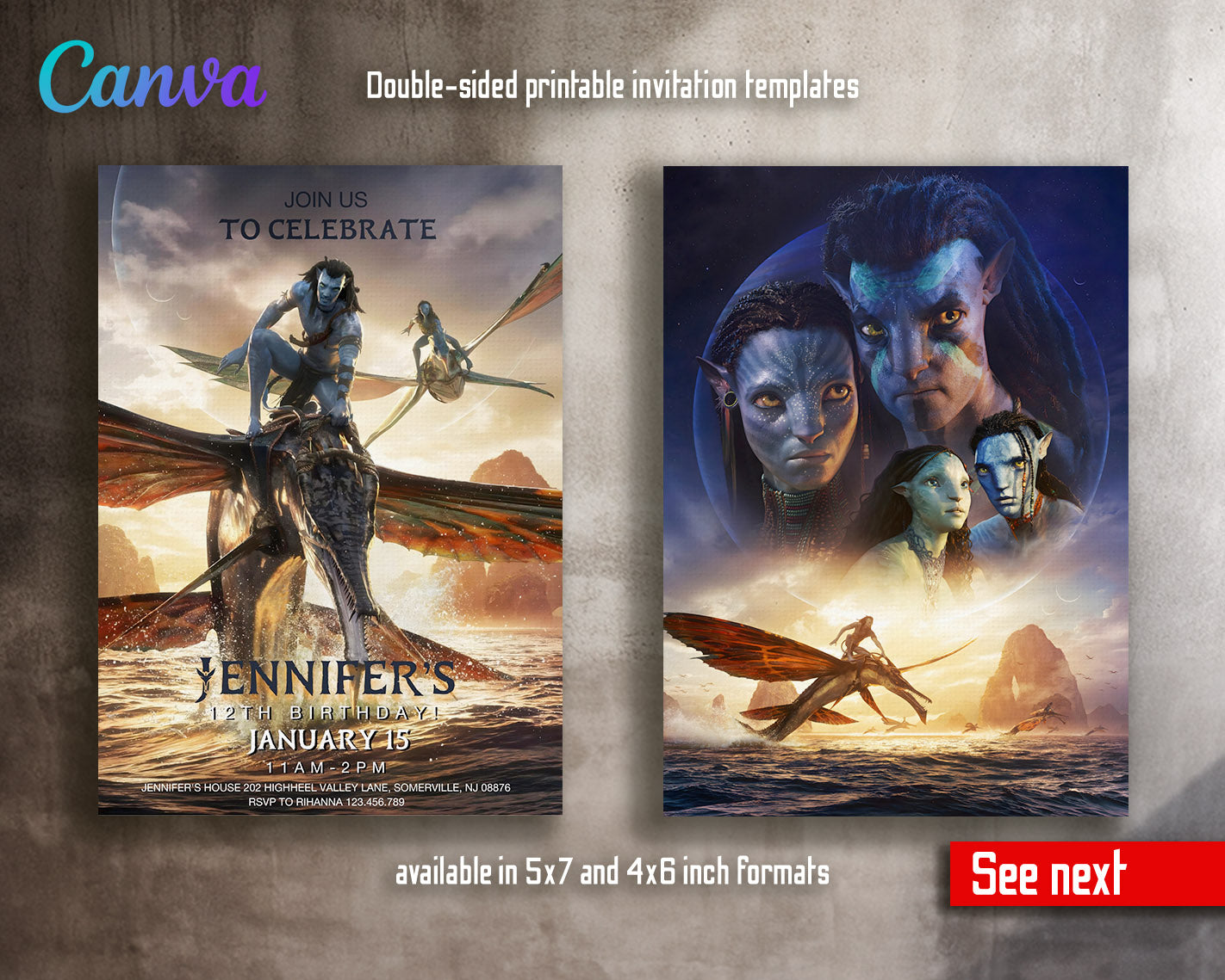Printable Editable customizable Avatar The Way of Water birthday party invitation digital template. Instant download invite.