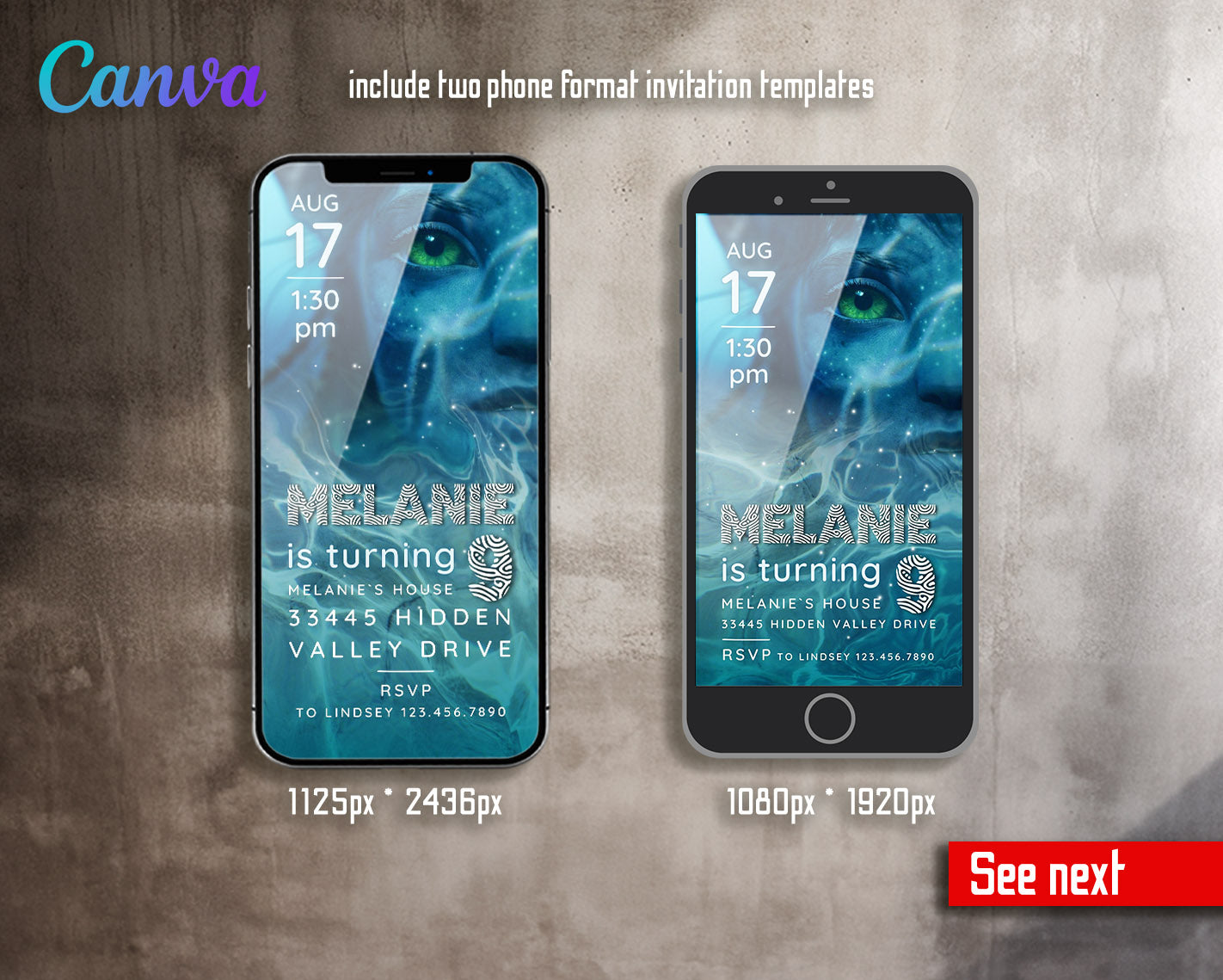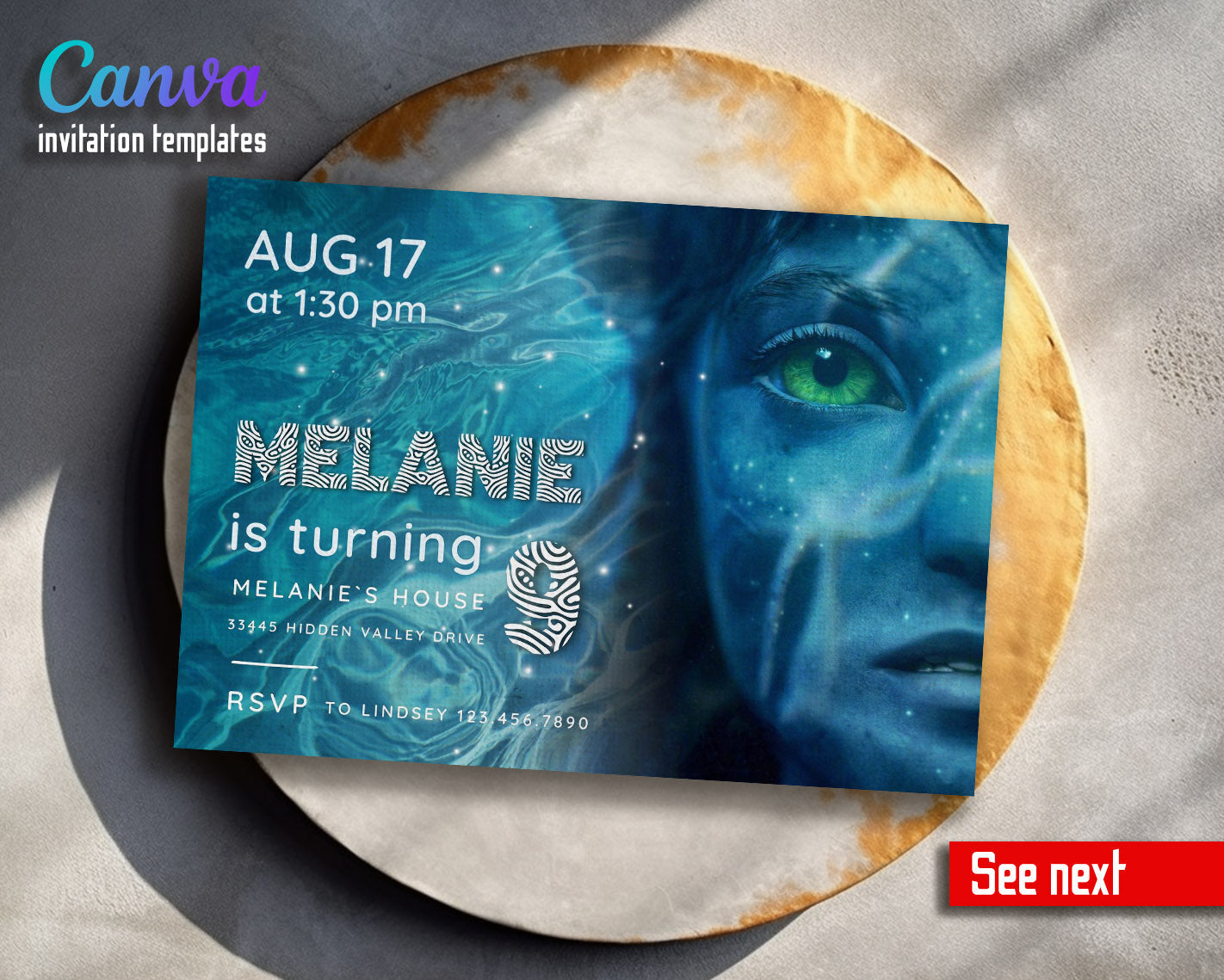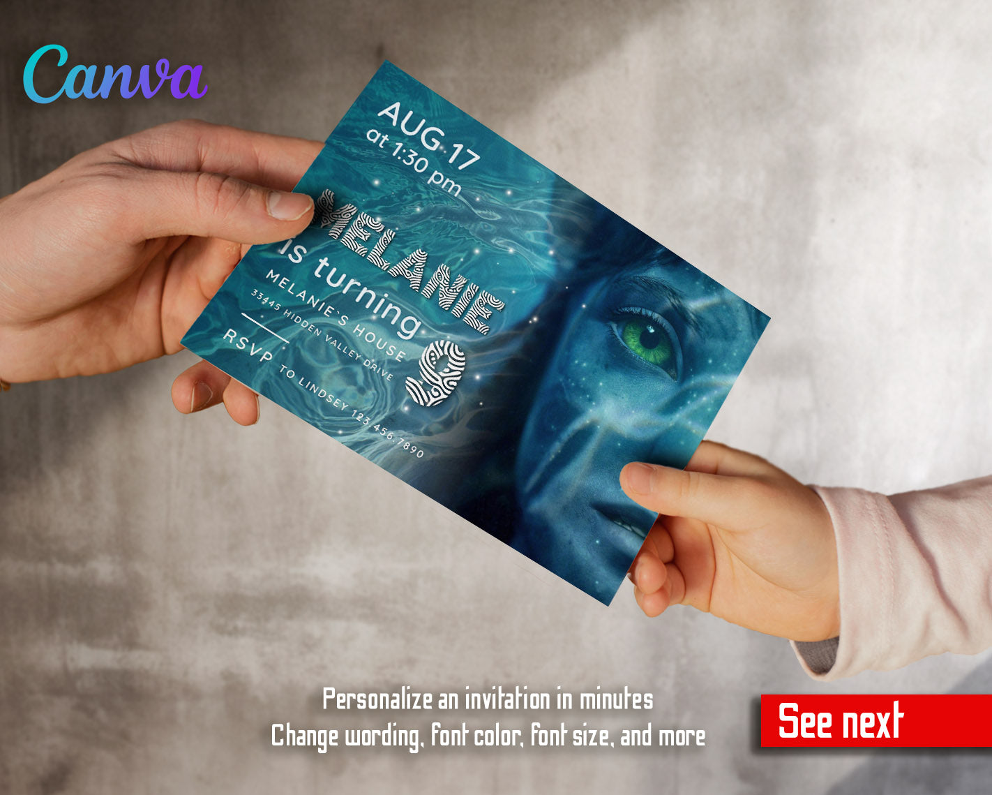 Printable Editable customizable Avatar The Way of Water birthday party invitation digital template. Instant download invite.