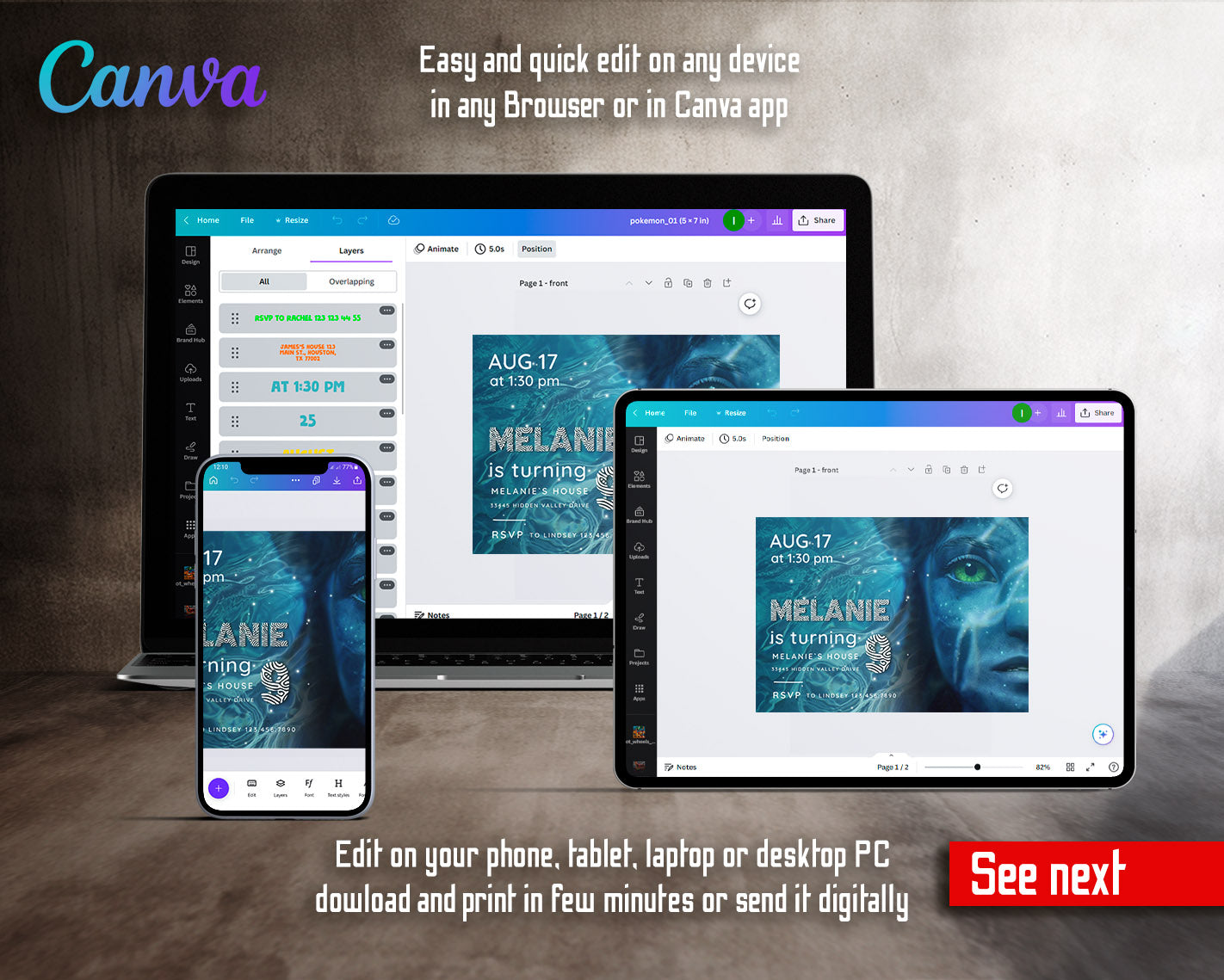Related Tags: avatar 2 invitation, avatar 2 birthday, Way of Water invite, pandora invitation, avatar party, digital invite, editable invitation, birthday invitation, printable invitation, avatar invite, The Way of Water, girl birthday,