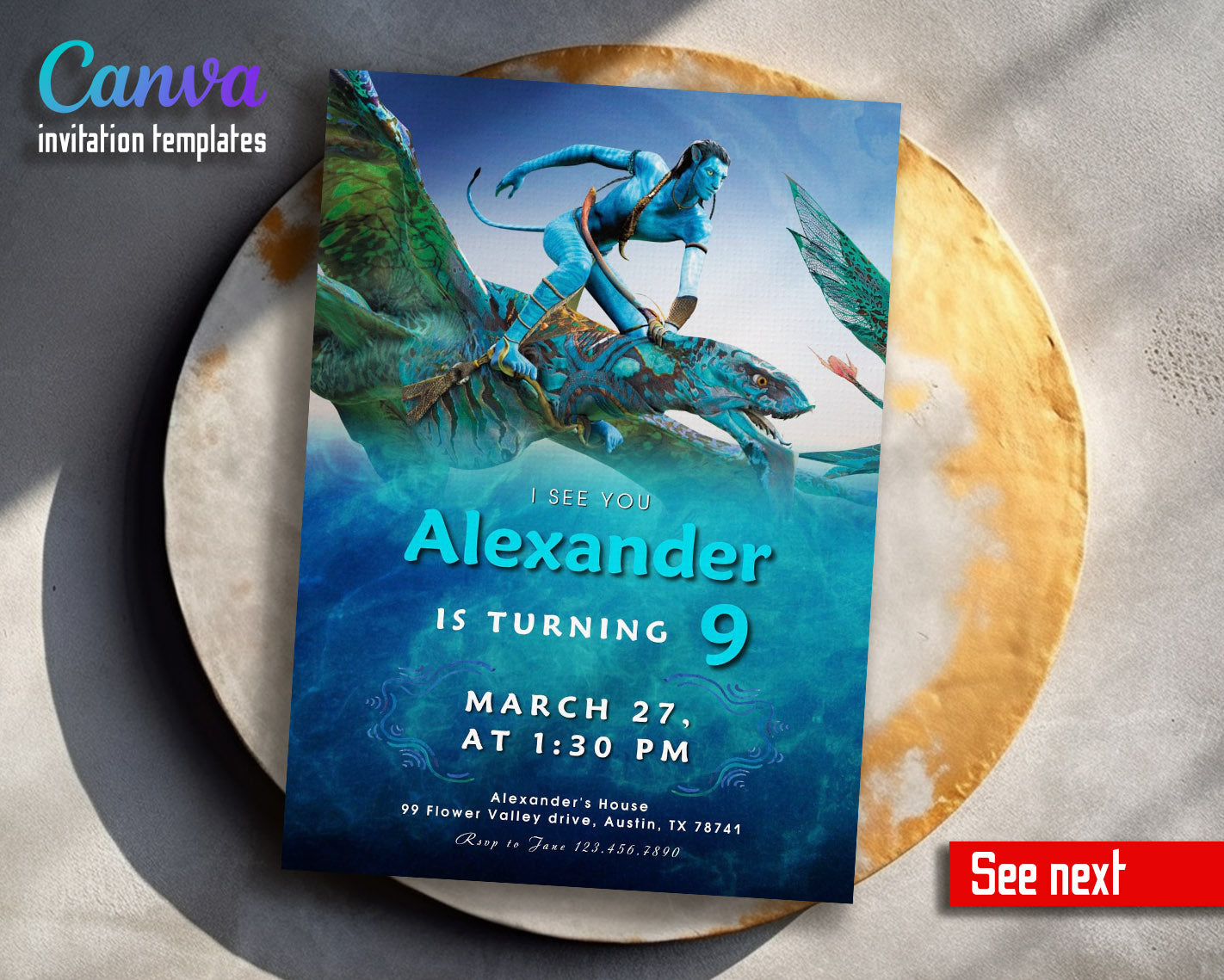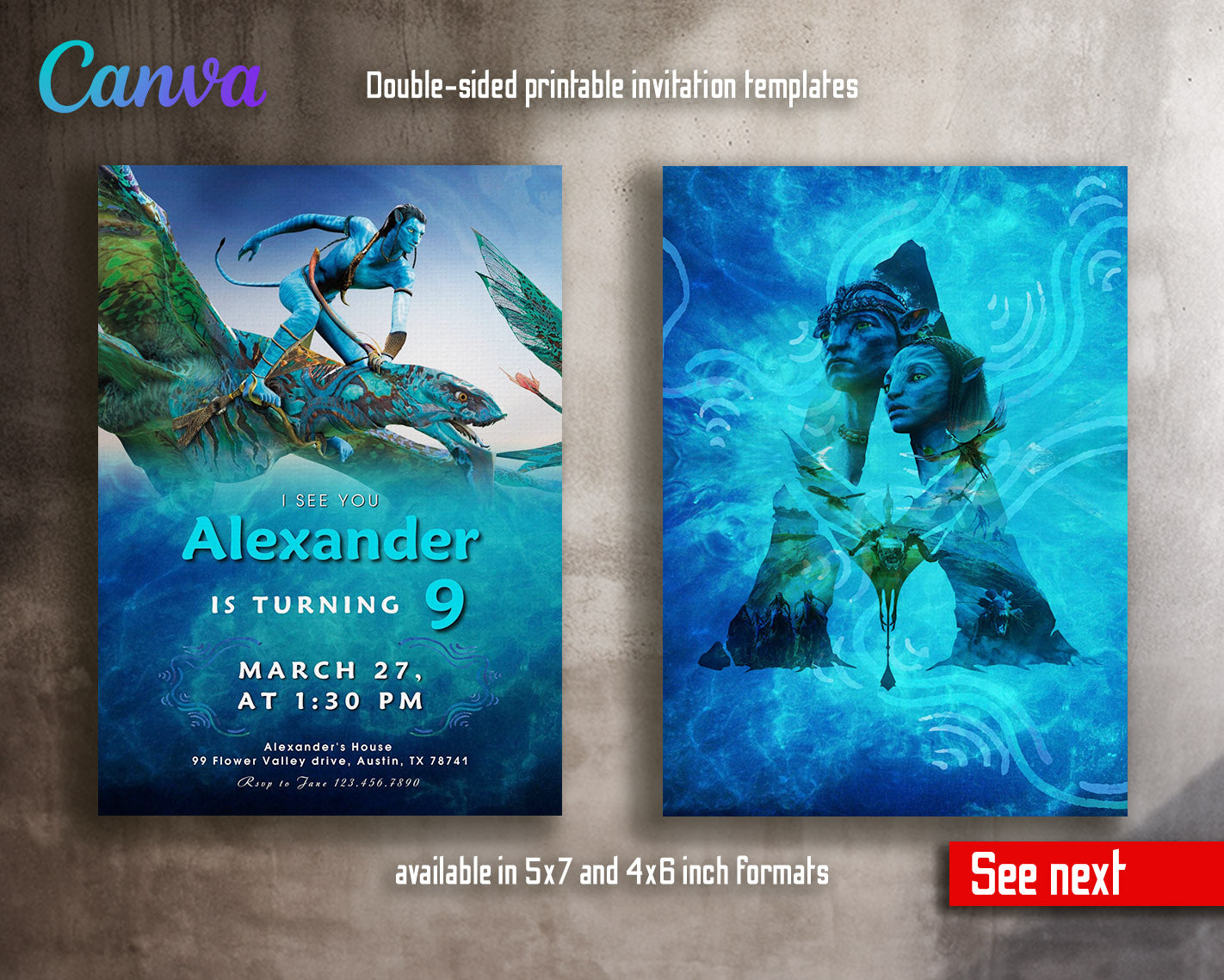 Printable Editable customizable Avatar The Way of Water birthday party invitation digital template. Instant download invite.