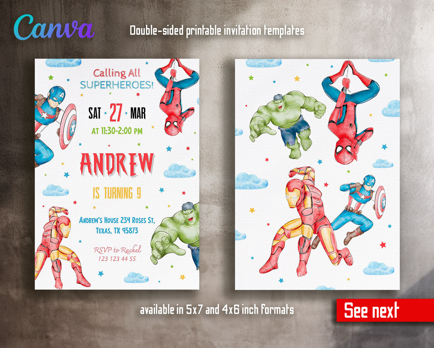 Related Tags: spiderman invitation, avengers birthday, marvel invite, superhero invitation, super hero party, hulk digital invite, editable invitation, birthday invitation, printable invitation, invite template, captain america, cap america birthday, iron man ivite