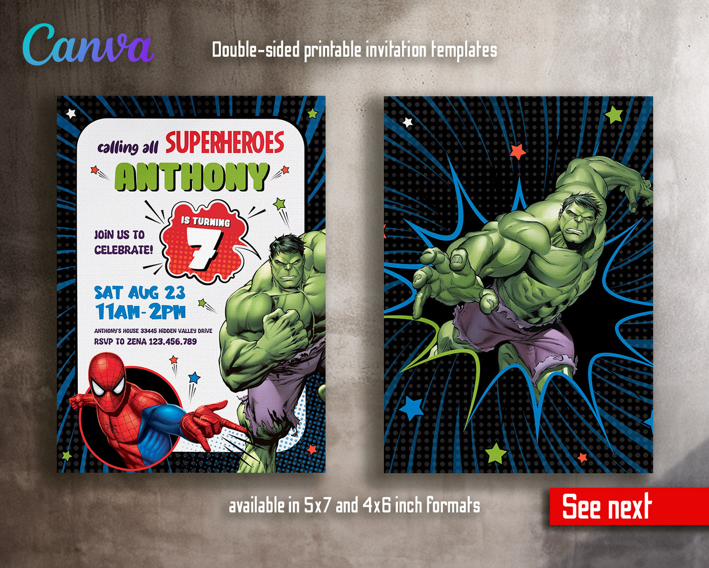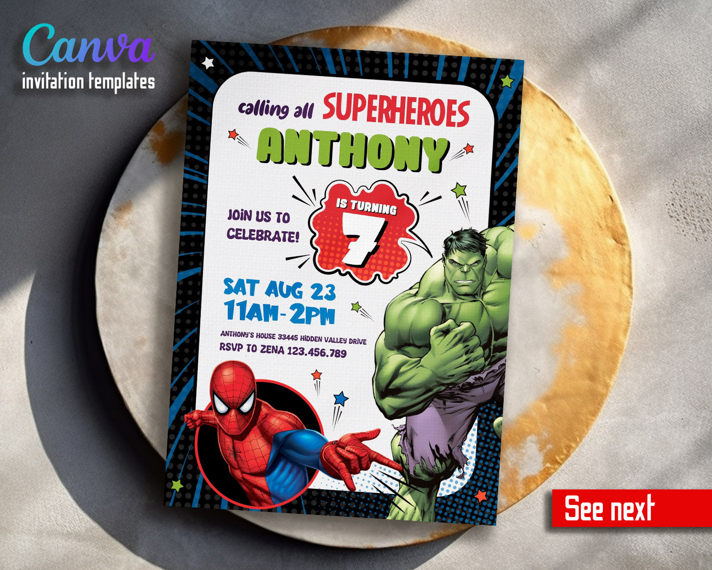 Related Tags: spiderman invitation, avengers birthday, marvel invite, superhero invitation, super hero party, hulk digital invite, editable invitation, birthday invitation, printable invitation, invite template, captain america, cap america birthday, iron man ivite