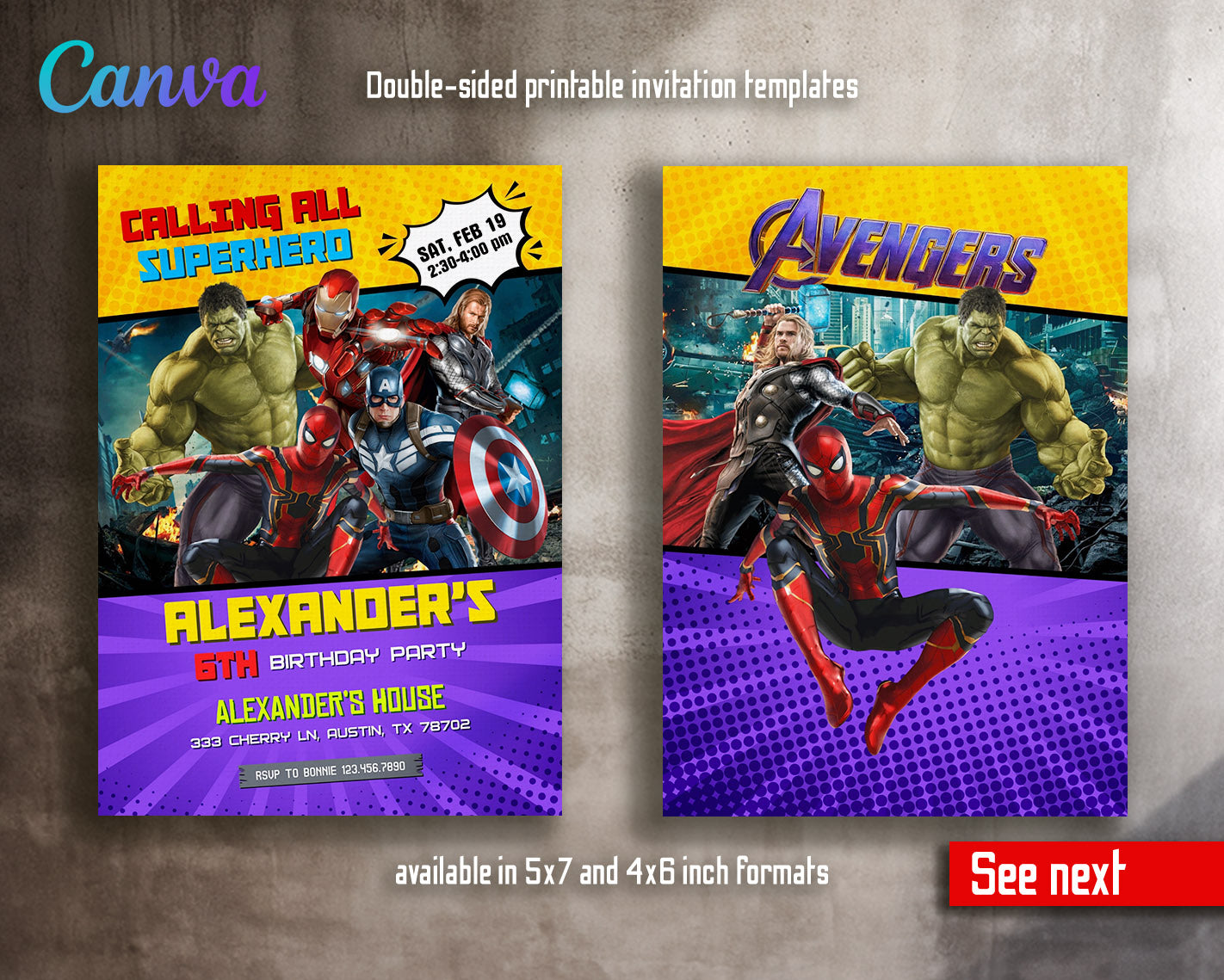 Related Tags: spiderman invitation, avengers birthday, marvel invite, superhero invitation, super hero party, hulk digital invite, editable invitation, birthday invitation, printable invitation, invite template, captain america, cap america birthday, iron man ivite