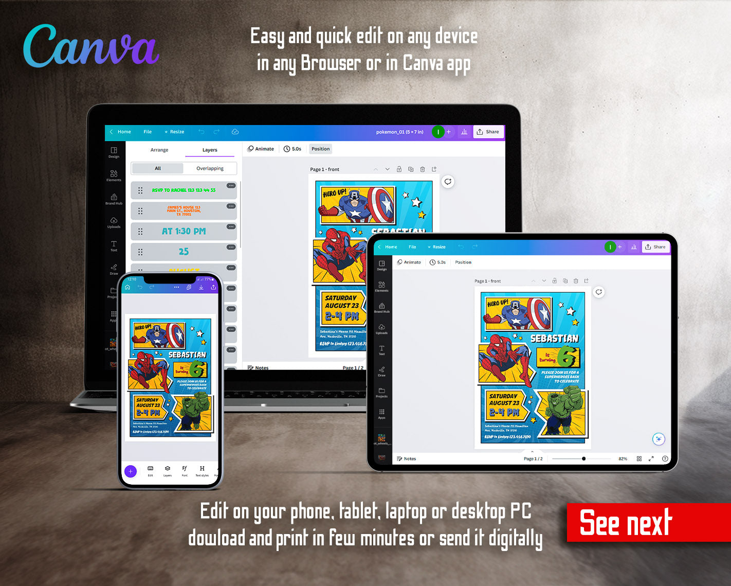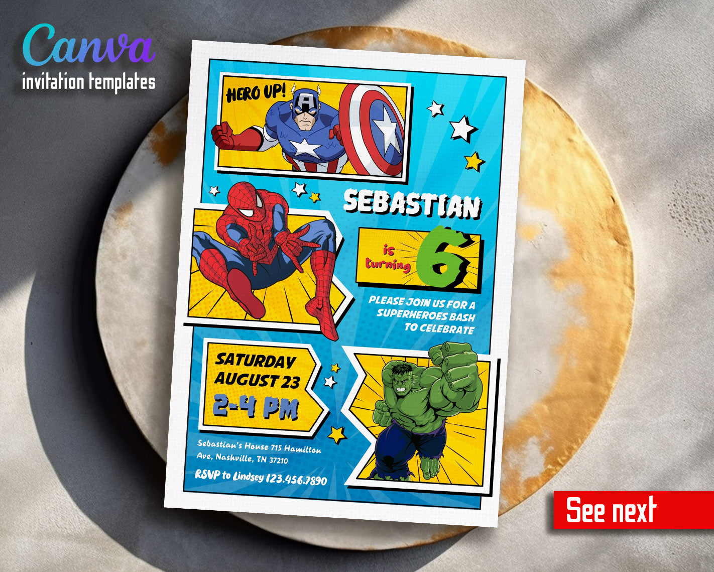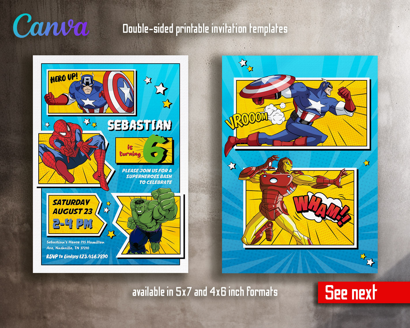 Related Tags: spiderman invitation, avengers birthday, marvel invite, superhero invitation, super hero party, hulk digital invite, editable invitation, birthday invitation, printable invitation, invite template, captain america, cap america birthday, iron man ivite