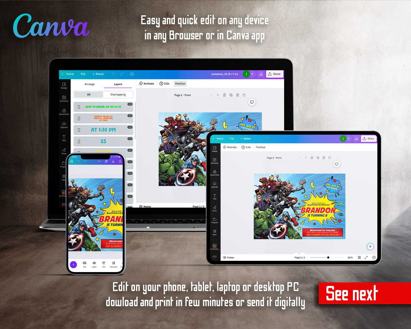 Related Tags: spiderman invitation, avengers birthday, marvel invite, superhero invitation, super hero party, hulk digital invite, editable invitation, birthday invitation, printable invitation, invite template, captain america, cap america birthday, iron man ivite