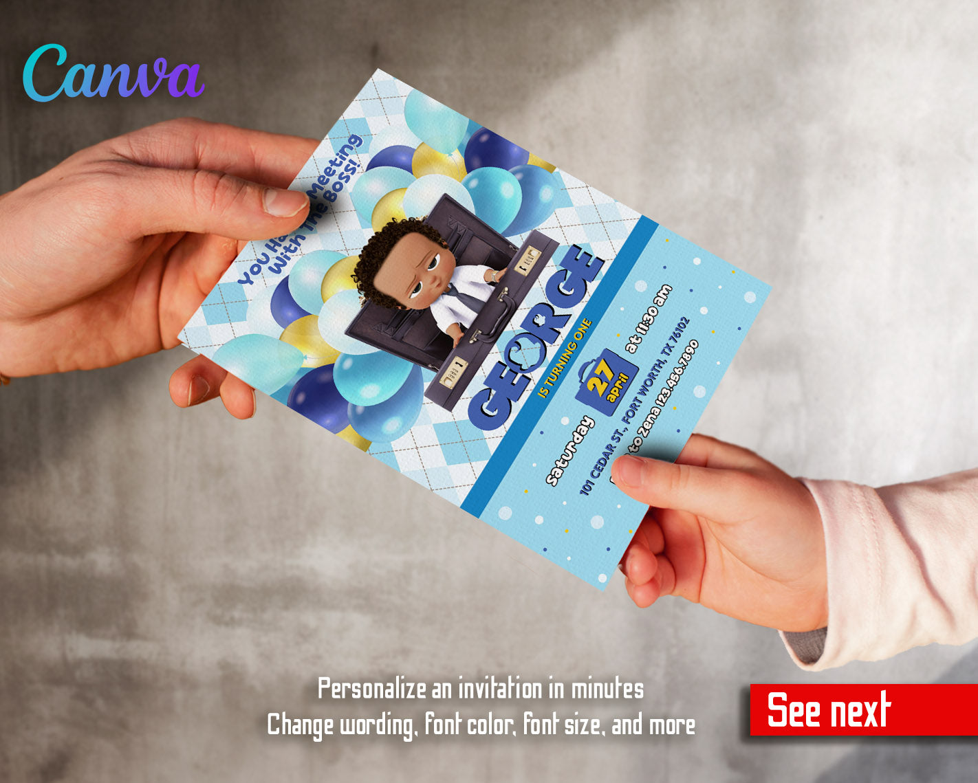 Printable Editable customizable Baby Boss birthday party invitation digital template. Instant download invite.