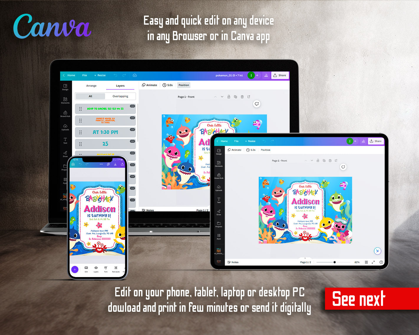 Related Tags: shark invitation, baby shark birthday, baby shark invite, sharky invitation, baby shark party, digital invite, editable invitation, birthday invitation, printable invitation, invite template, evite, girl birthday,