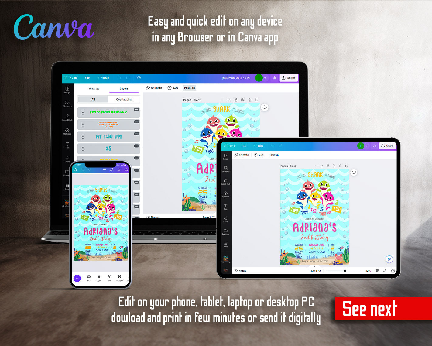 Related Tags: shark invitation, baby shark birthday, baby shark invite, sharky invitation, baby shark party, digital invite, editable invitation, birthday invitation, printable invitation, invite template, evite, girl birthday,