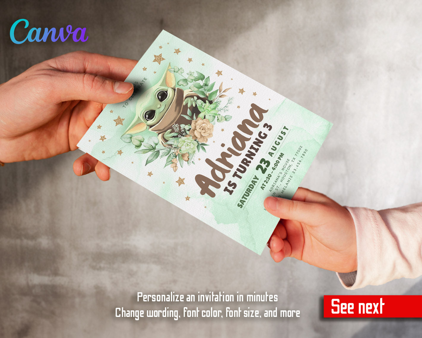 Related Tags: baby yoda invitation, baby yoda birthday, mandalorian invite, grogu invitation, star wars party, digital invite, editable invitation, birthday invitation, printable invitation, invite template, evite, girl birthday,
