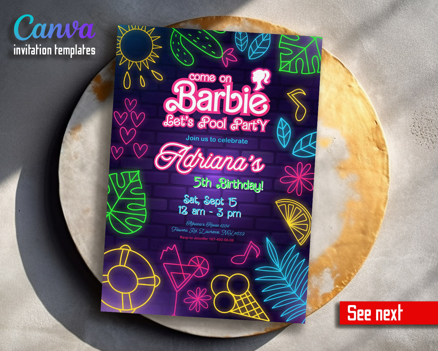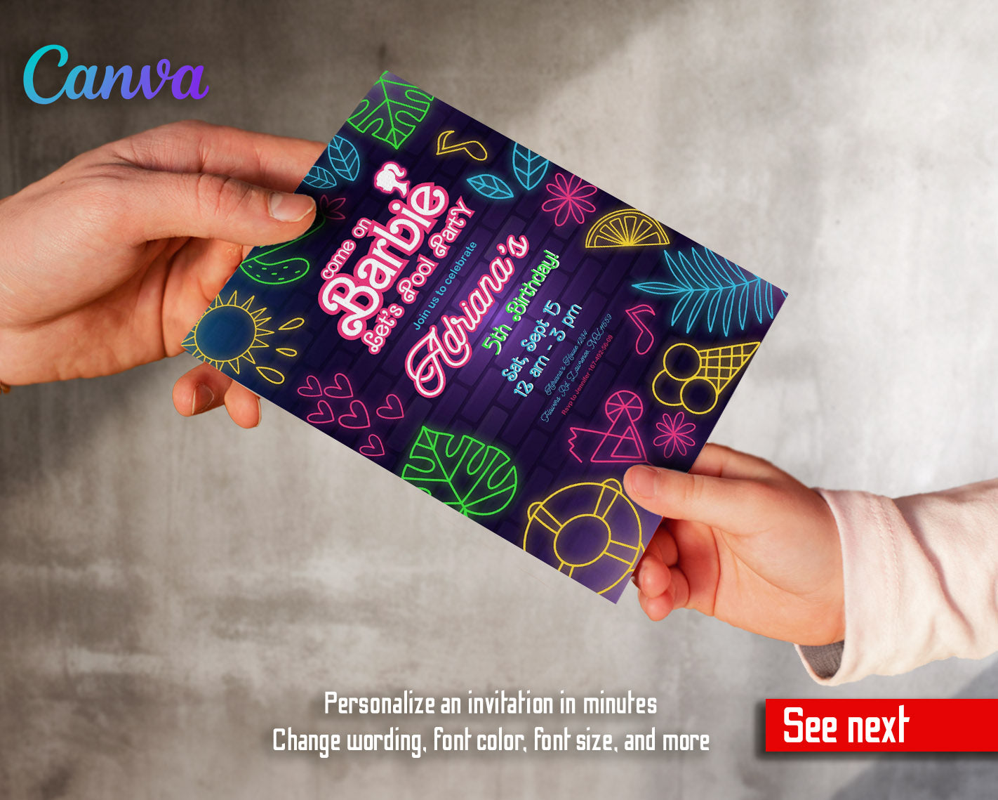 Printable Editable customizable Barbie Pink birthday party invitation digital template. Instant download invite.