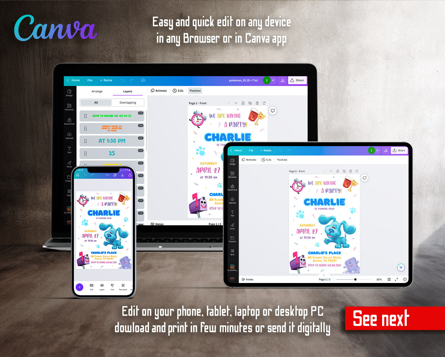 Related Tags: blues clues invite, blues clues birthday, paw-ty invite, puppy invitation, blues clues party, digital invite, editable invitation, birthday invitation, printable invitation, invite template, blues clues evite, girl birthday, boy birthday