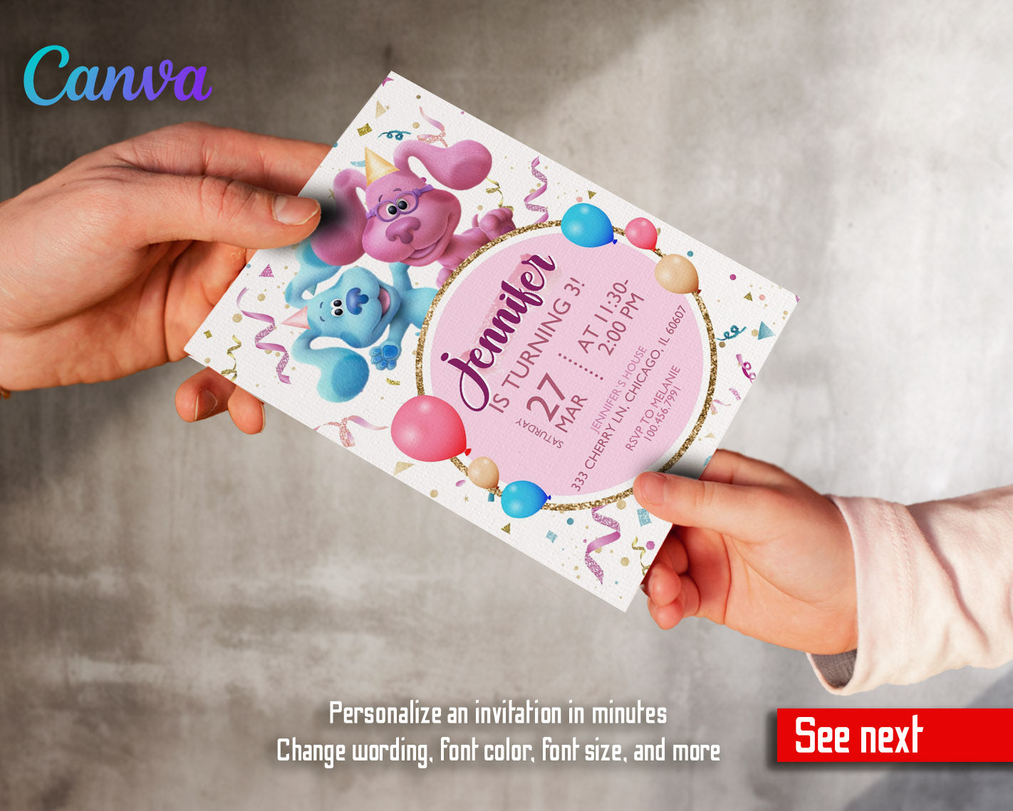 Printable Editable customizable Blue's Clues Puppy birthday party invitation digital template. Instant download invite.