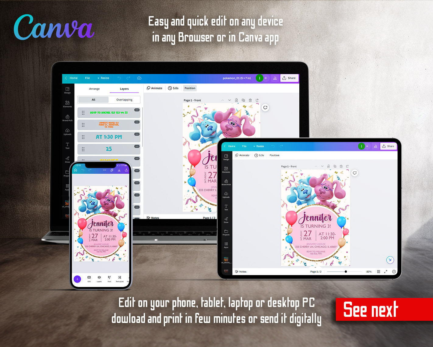 Related Tags: blues clues invite, blues clues birthday, paw-ty invite, puppy invitation, blues clues party, digital invite, editable invitation, birthday invitation, printable invitation, invite template, blues clues evite, girl birthday, boy birthday