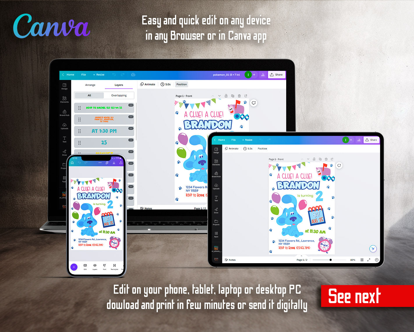 Related Tags: blues clues invite, blues clues birthday, paw-ty invite, puppy invitation, blues clues party, digital invite, editable invitation, birthday invitation, printable invitation, invite template, blues clues evite, girl birthday, boy birthday