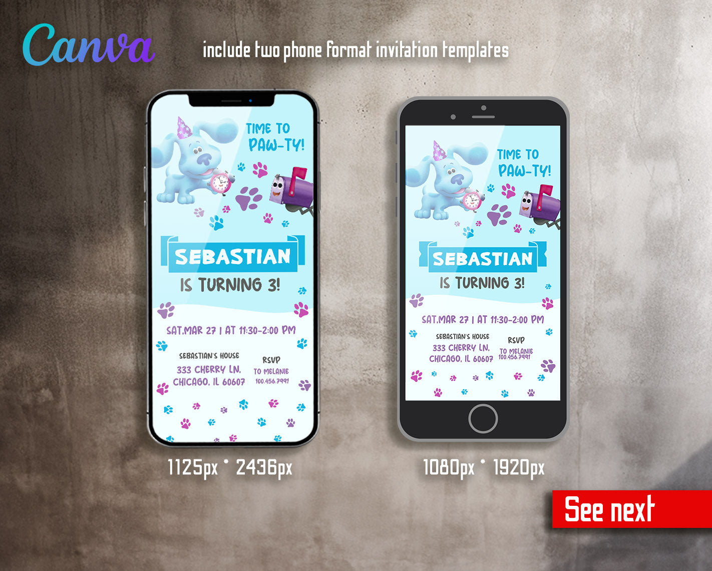 Printable Editable customizable Blue's Clues Puppy birthday party invitation digital template. Instant download invite.