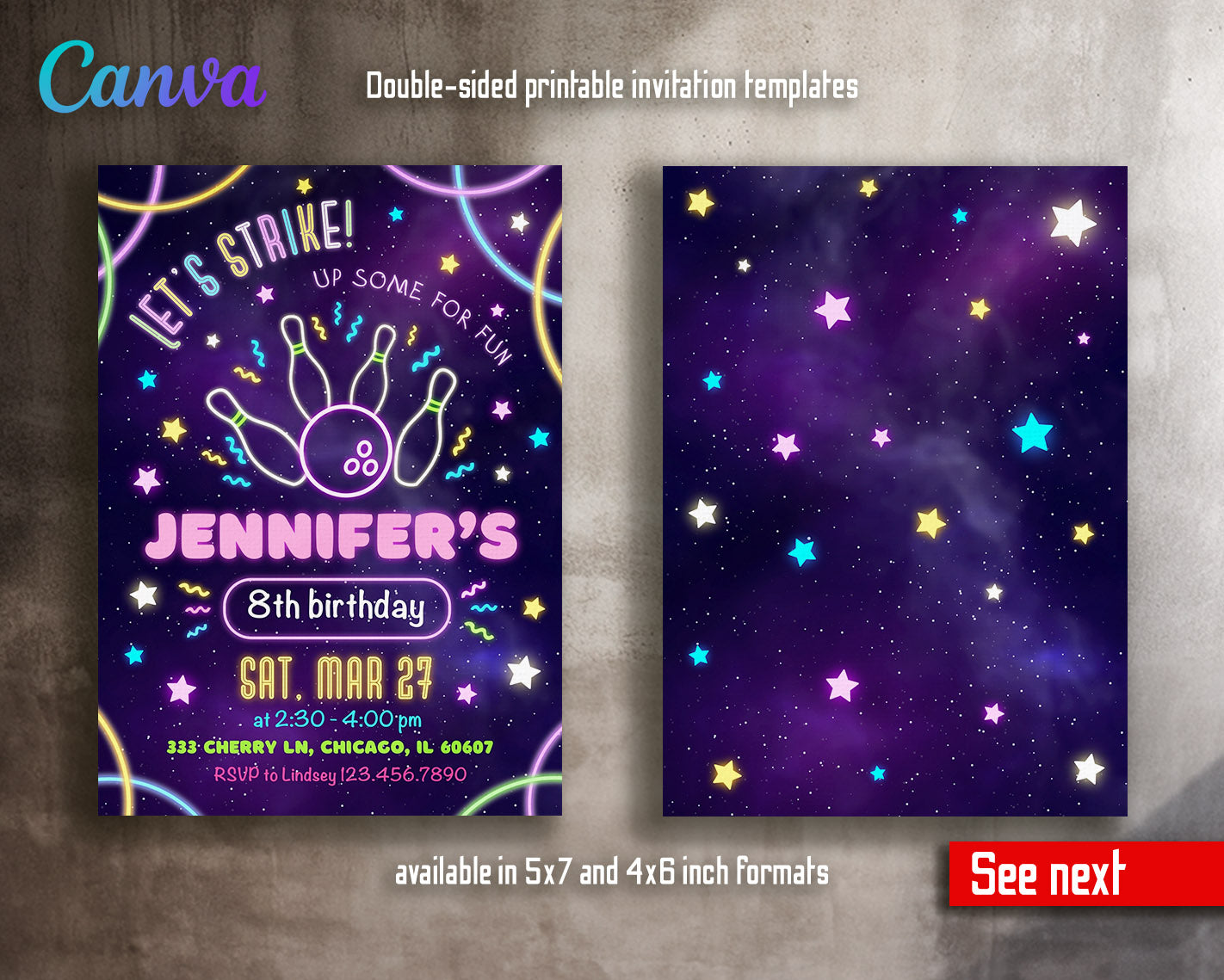 Related Tags: bowling invitation, bowling birthday, strike invite, 8-ball invitation, bowling party, digital invite, strike invitation, birthday invitation, printable invitation, invite template, evite, girl birthday,