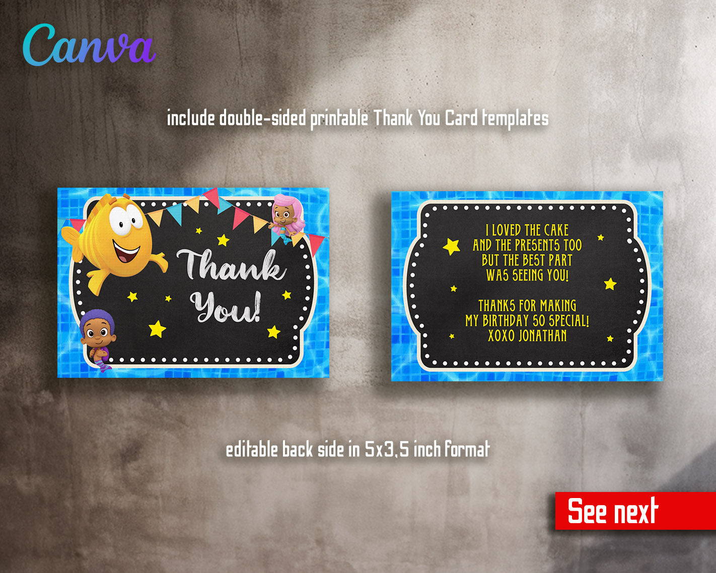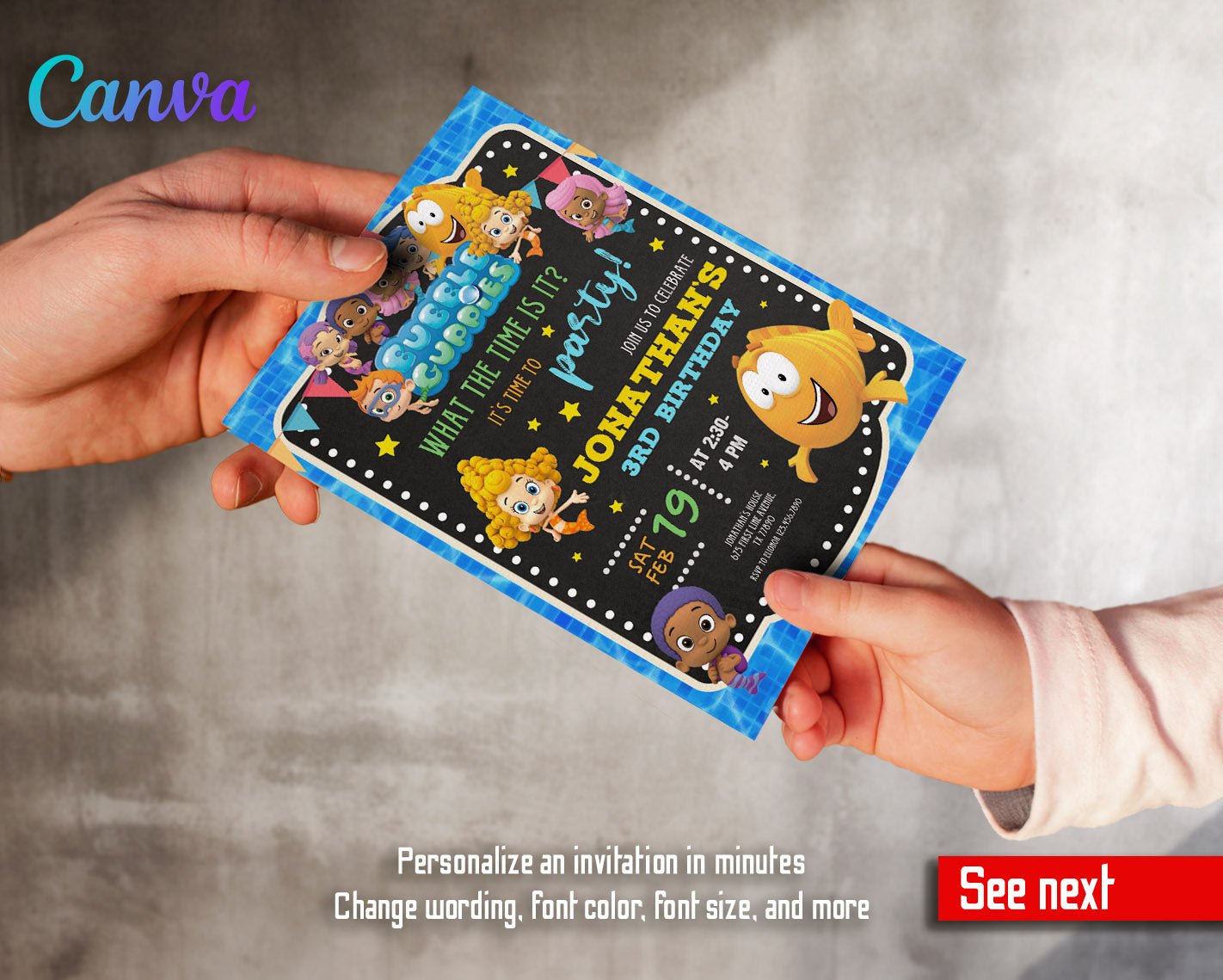Printable Editable customizable Bubble Guppies birthday party invitation digital template. Instant download invite.
