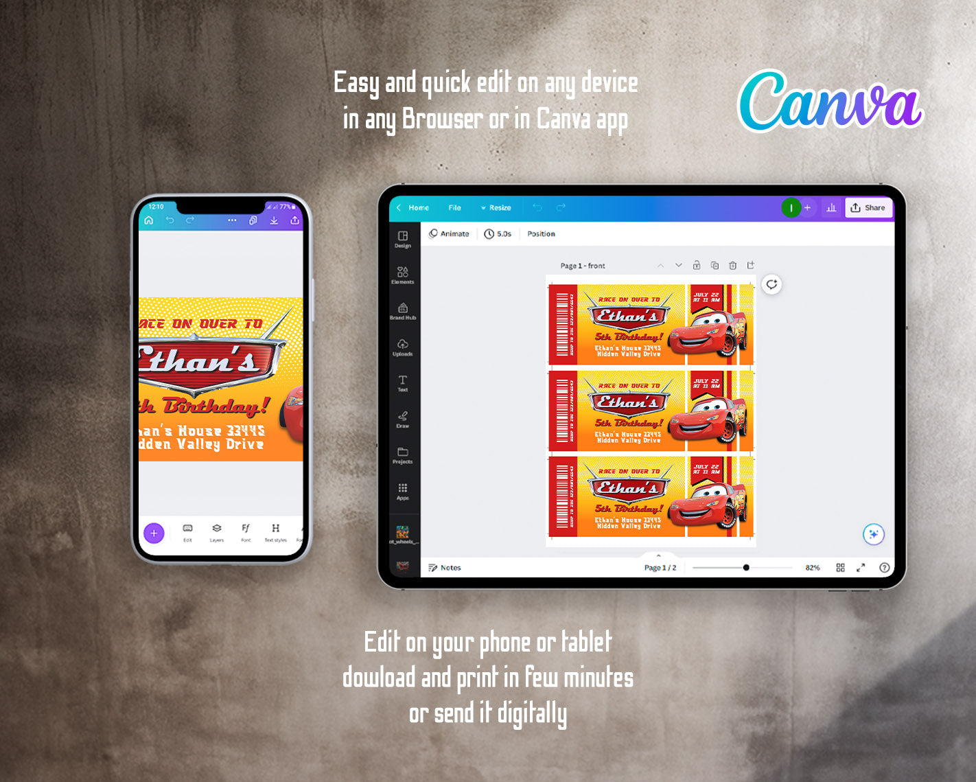 Related Tags: cars invitation, cars birthday, Lightning Mcqueen, Mcqueen invitation, racing party, cinema invite, movie party, ticket invitation, 1st 2nd 3rd bday, editable invitation, birthday invitation, printable invitation, speed race bday