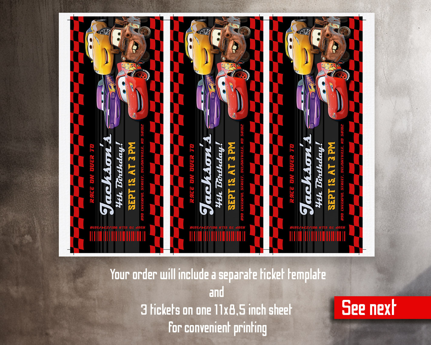 Related Tags: cars invitation, cars birthday, Lightning Mcqueen, Mcqueen invitation, racing party, cinema invite, movie party, ticket invitation, 1st 2nd 3rd bday, editable invitation, birthday invitation, printable invitation, speed race bday