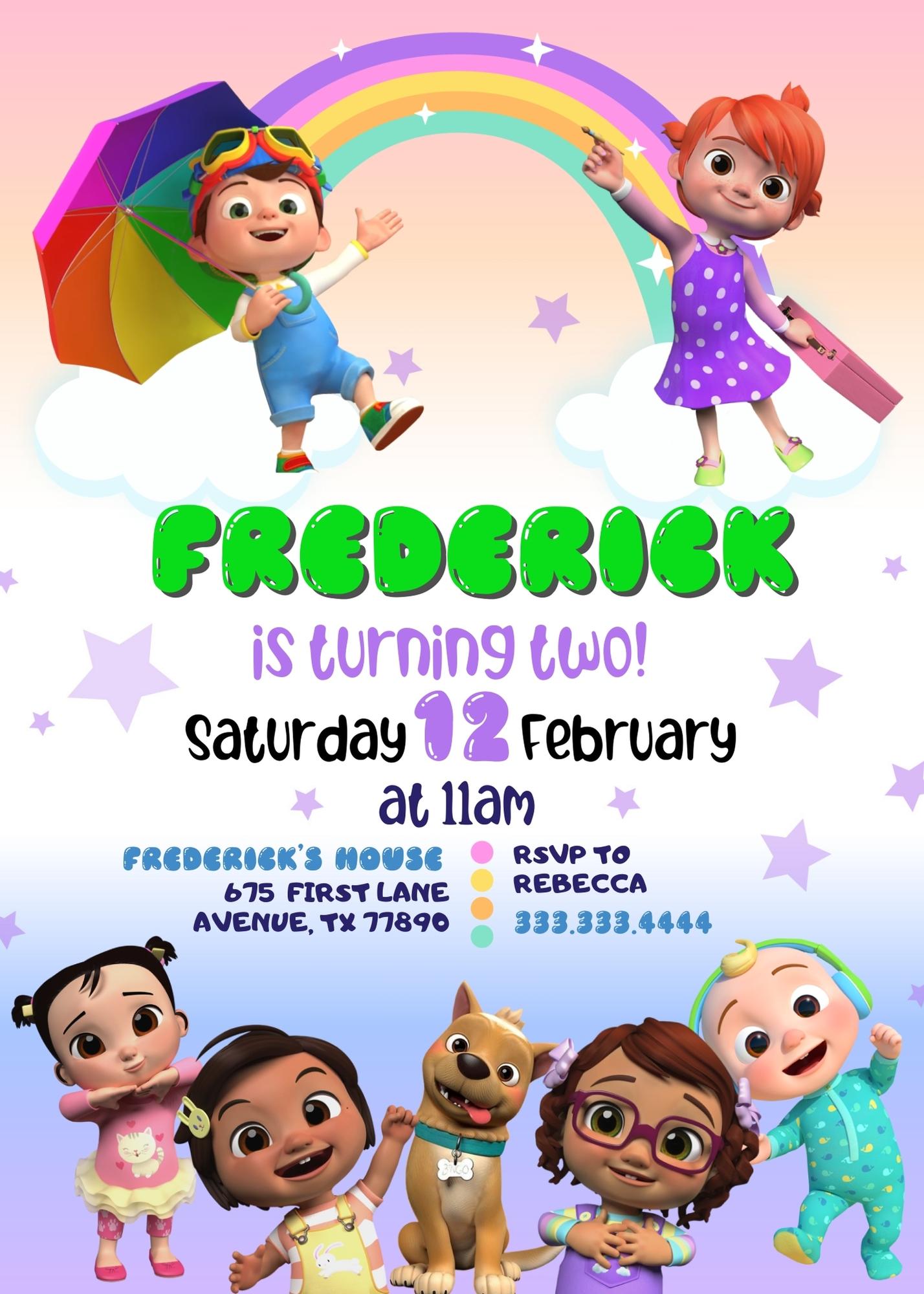 Related Tags: cocomelon invitation, cocomelon birthday, cocomelon invite, first invitation, cocomelon party, digital invite, editable invitation, birthday invitation, printable invitation, invite template, evite, girl birthday, boy birthday