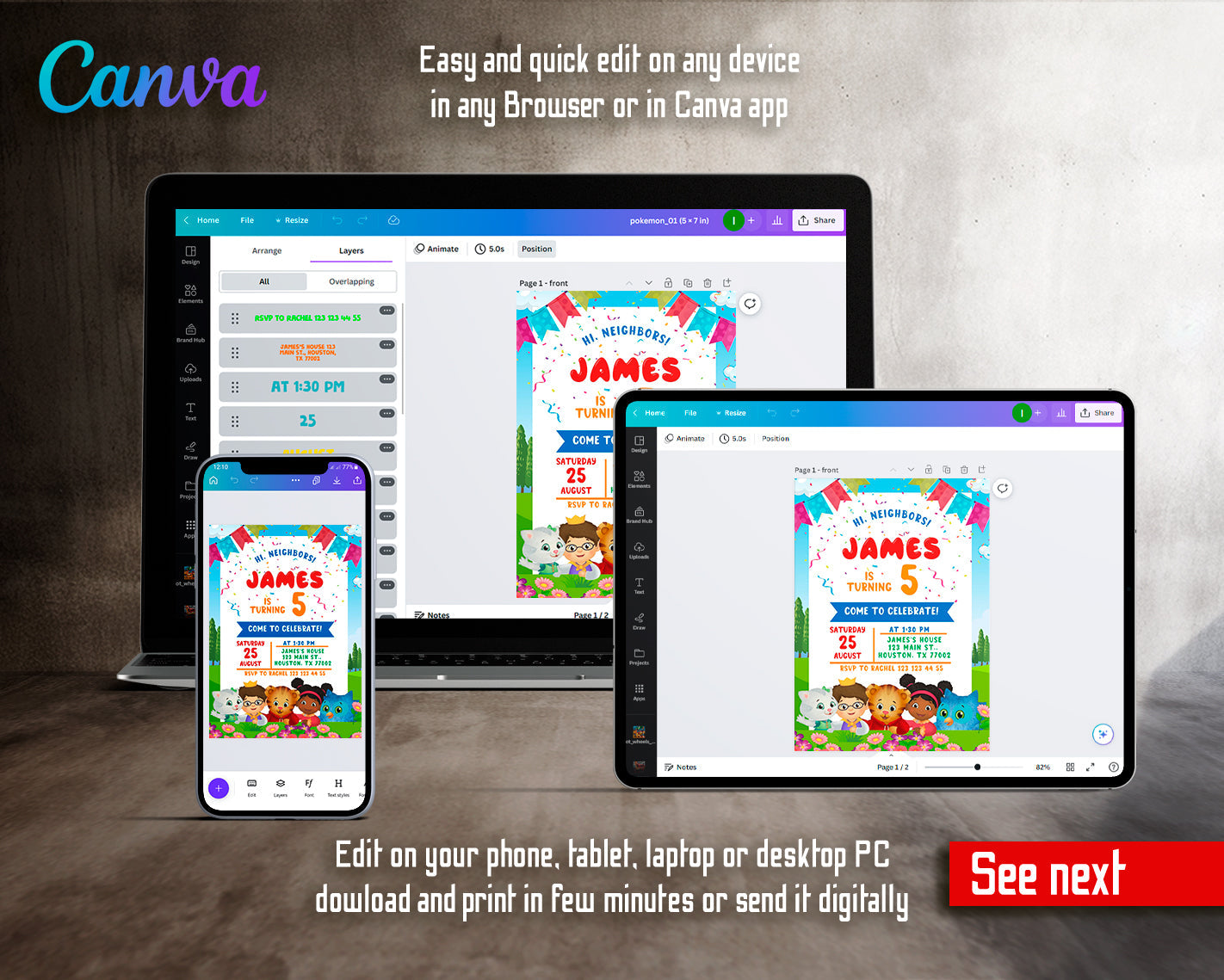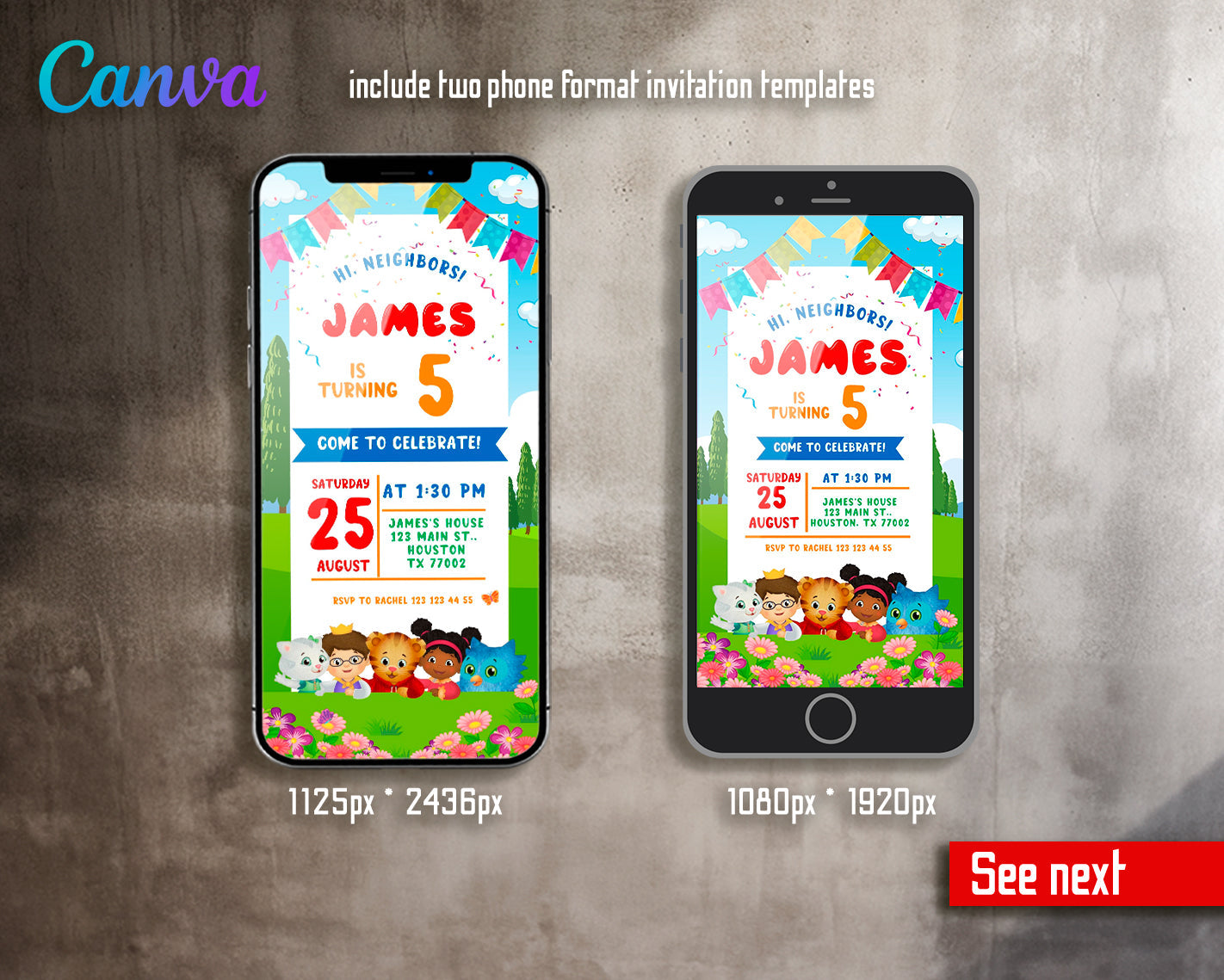 Daniel Tiger birthday Invitation, Printable editable Birthday Invitation, daniel's tiger neighborhood invite, boy girl invitation