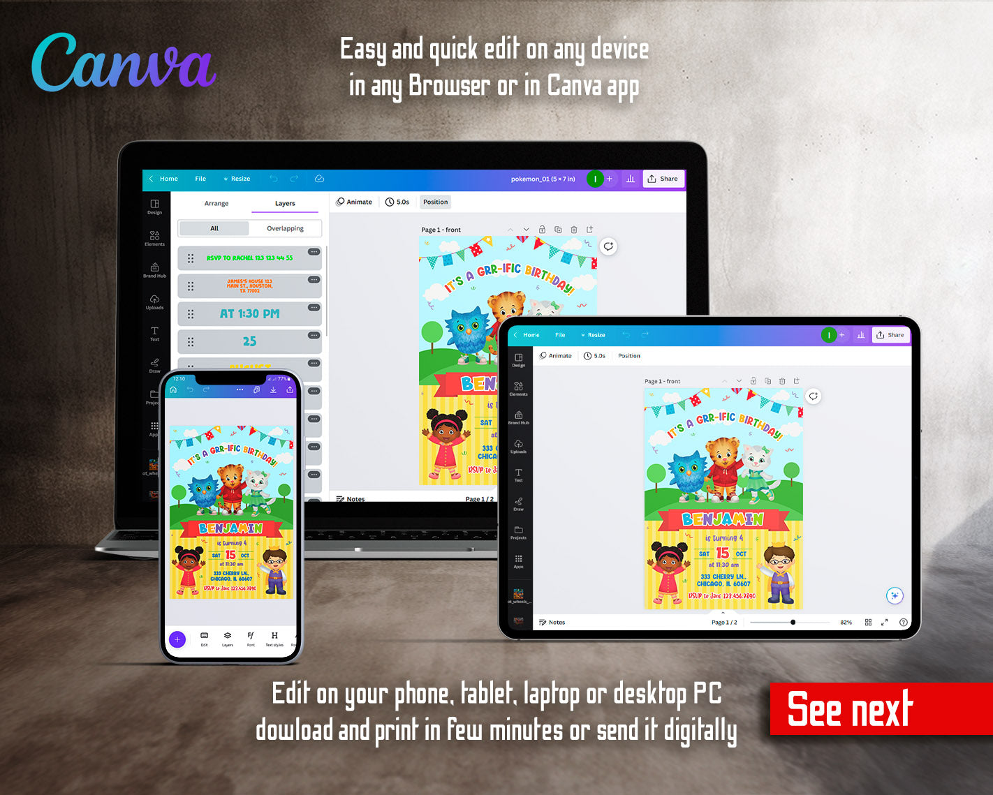 Related Tags: daniel tiger invite, daniel neighborhood, daniel invitation, tiger invitation, daniel tiger party, digital invite, editable invitation, birthday invitation, printable invitation, invite template, evite, girl birthday, boy birthday