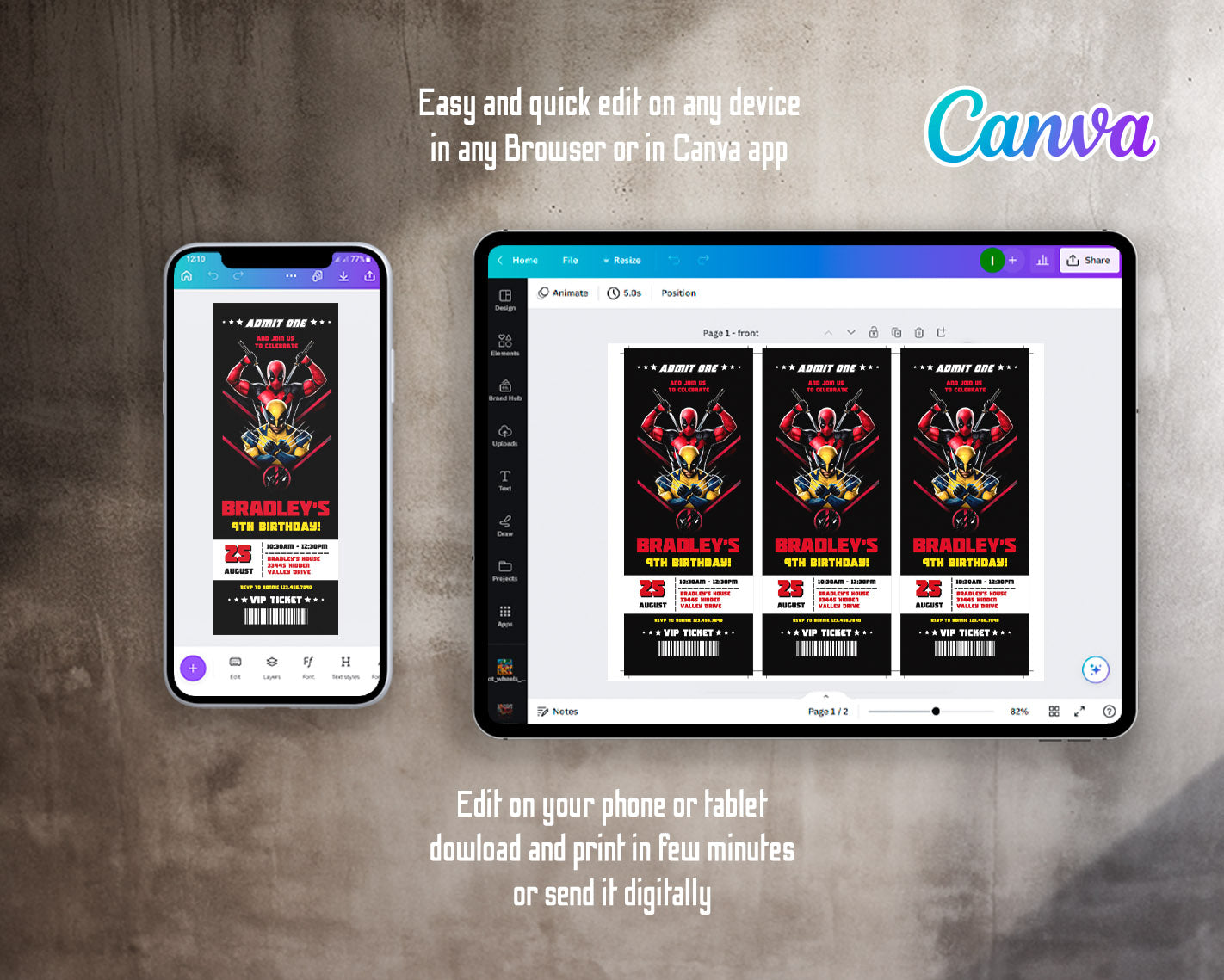 Related Tags: deadpool birthday, Wolverine invite, marvel invitation, superhero party, movie party ticket, super hero invite, dead pool party, logan invitation, marvel comics bday, editable invitation, birthday invitation, printable invitation, invite template