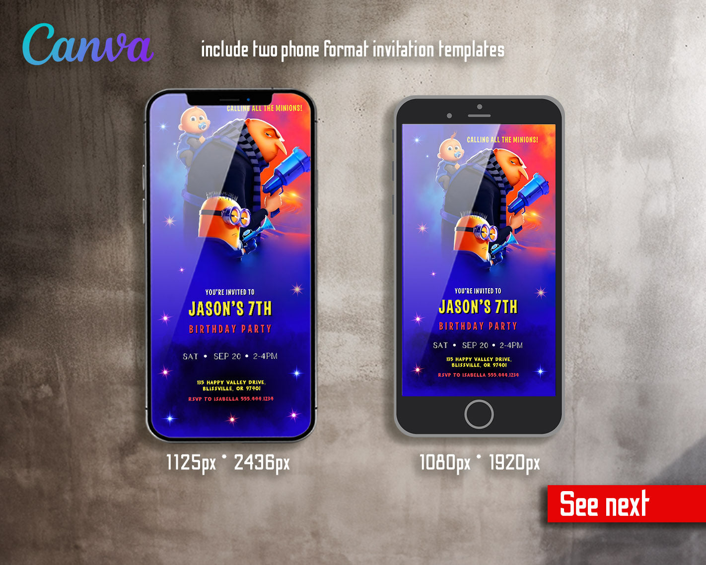 Printable Editable customizable Despicable Me Minions birthday party invitation digital template. Instant download invite.