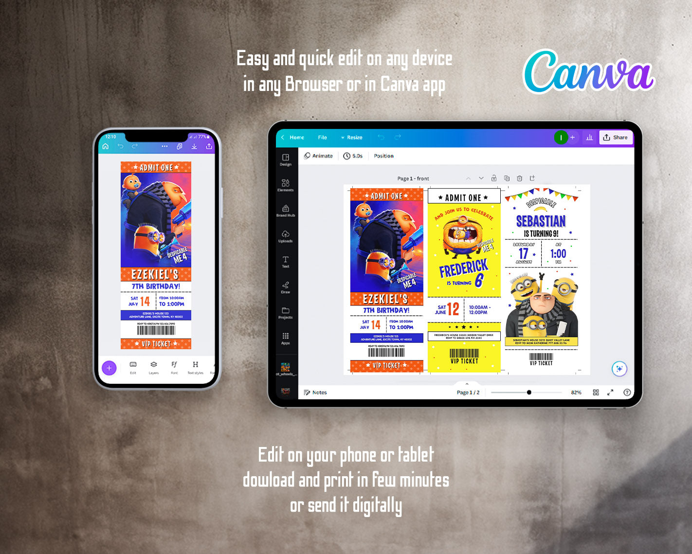 All the invitations are for self-editing. You will edit your template in Canva. It’s easy whether you're using the web browser or the app.