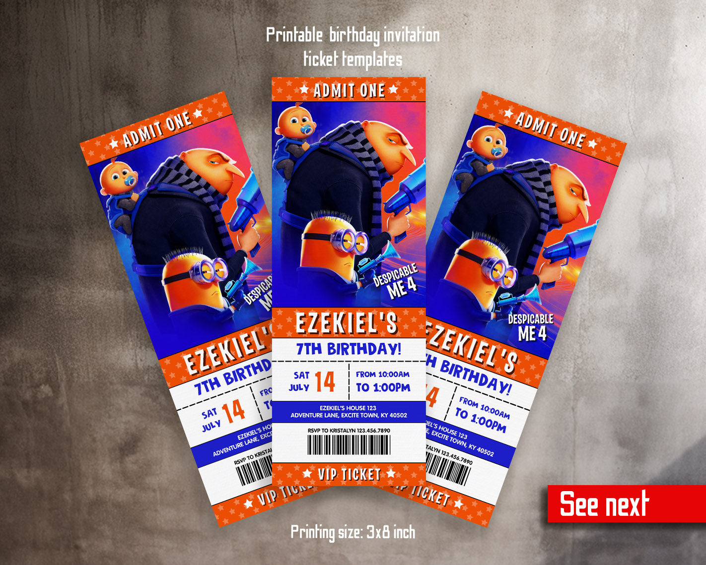 Related Tags: minions invitation, minions birthday, Despicable Me invite, minion invite, minions party, despicable four, movie party ticket, birthday invitation, printable invitation, despicable me 5, banana evite, girl birthday, boy birthday