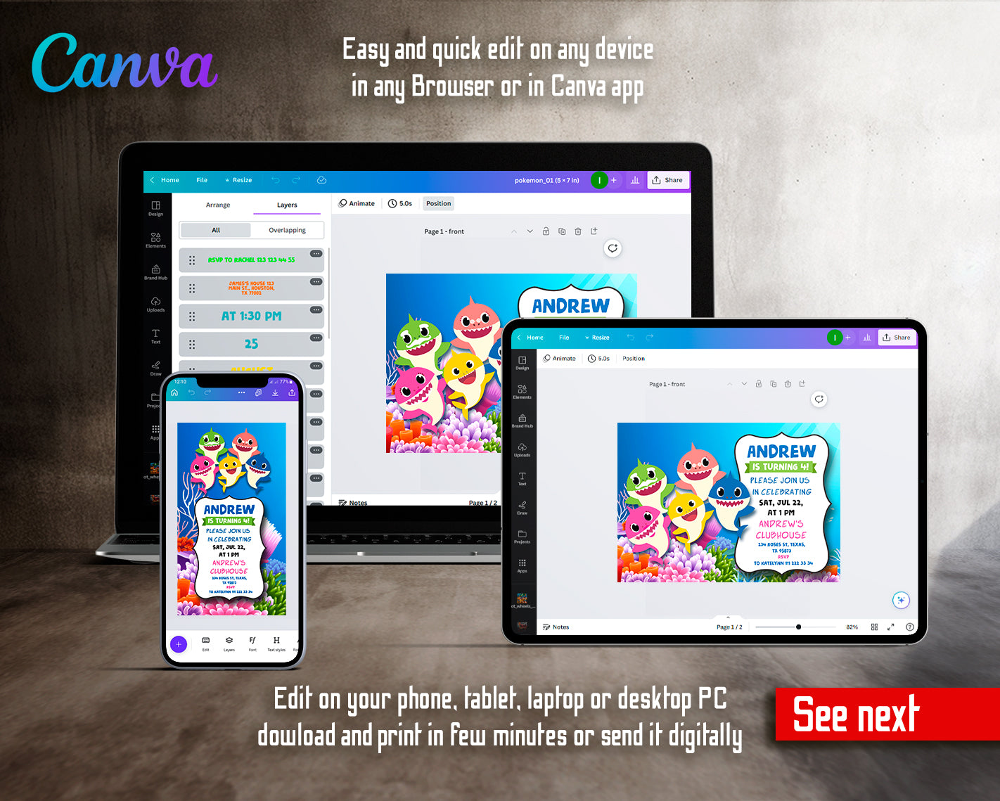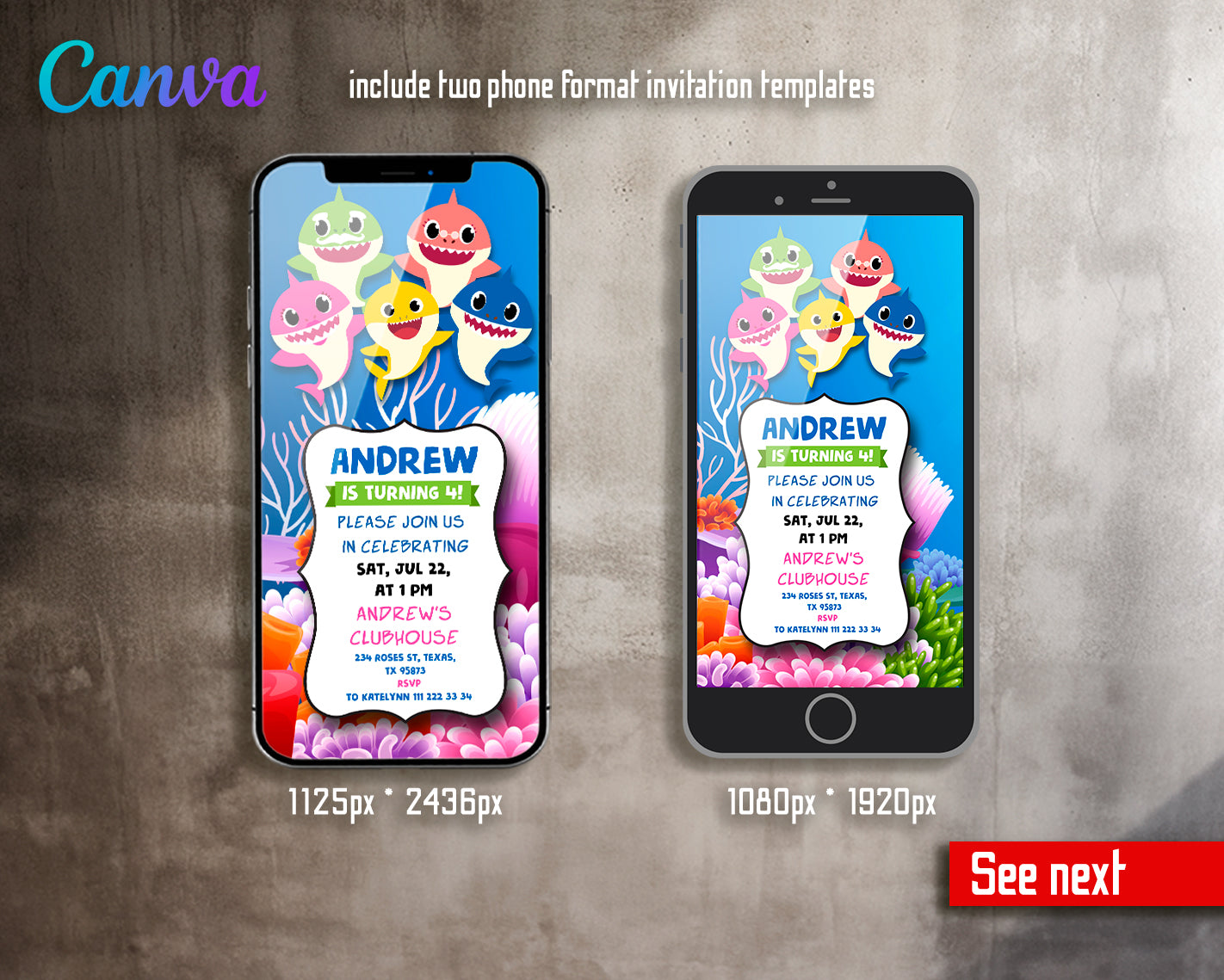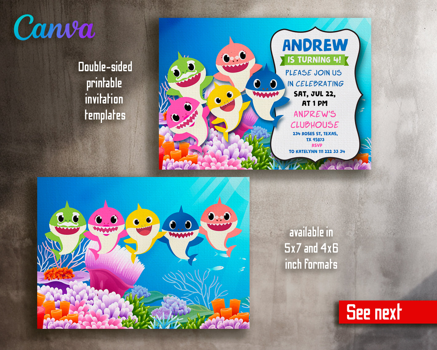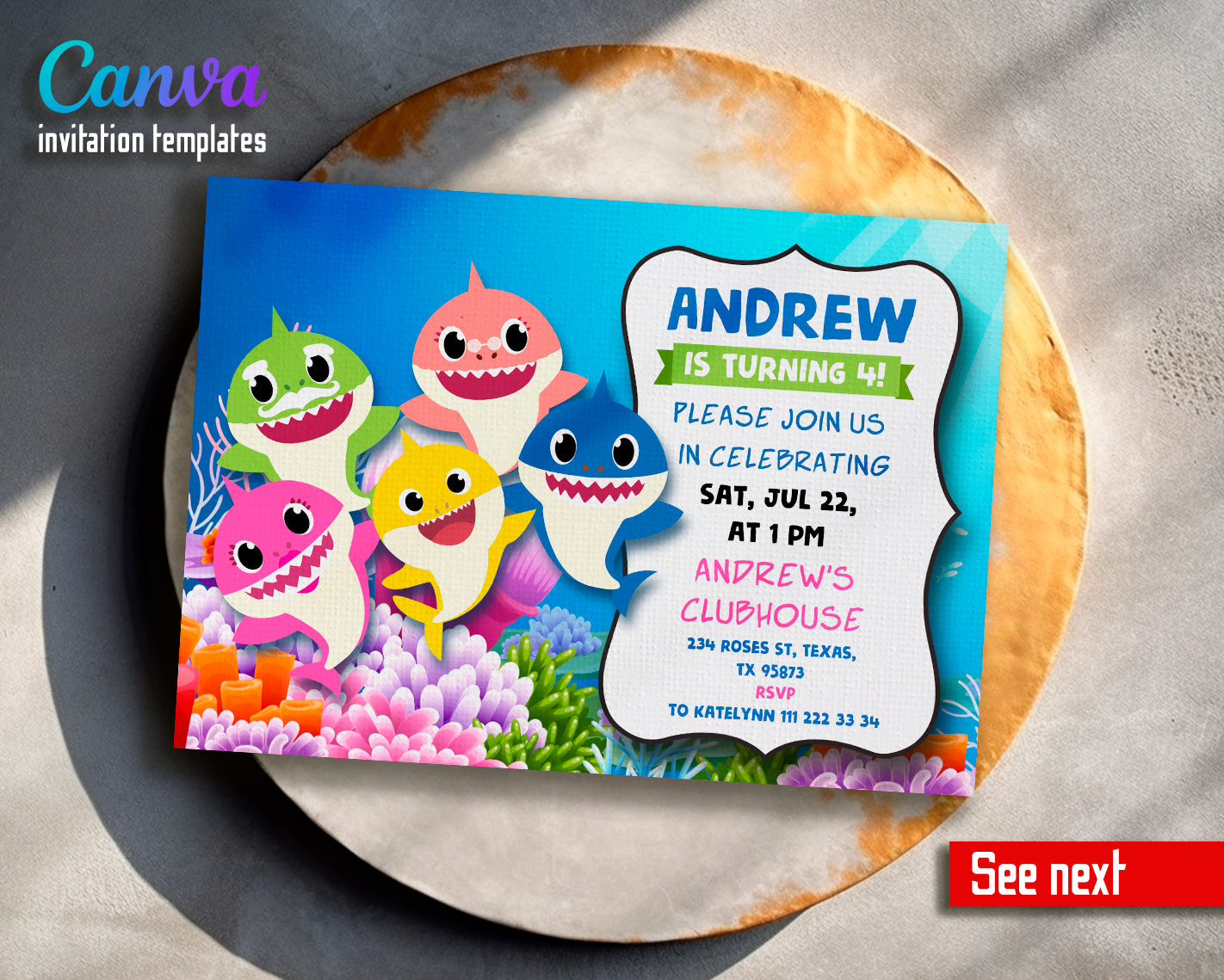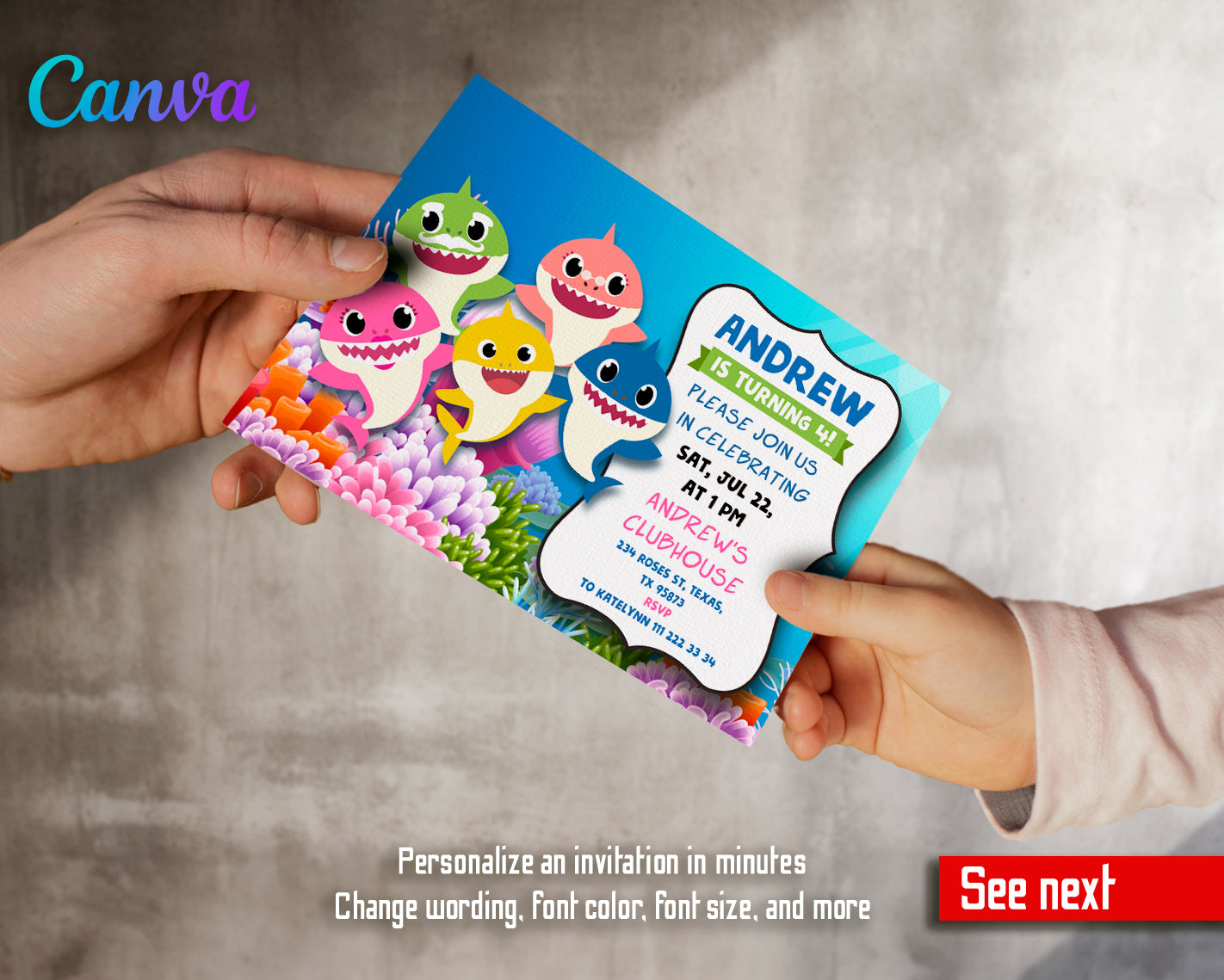 Baby Shark customizable invite template | instant download | Share or Print | CC444