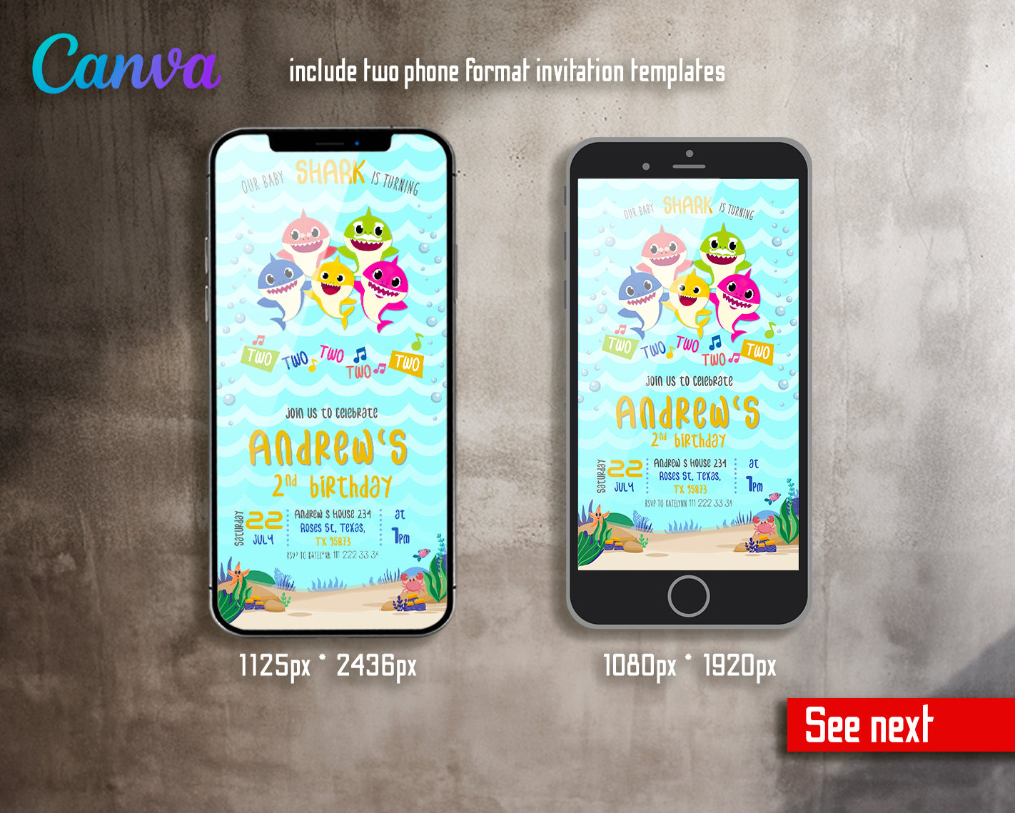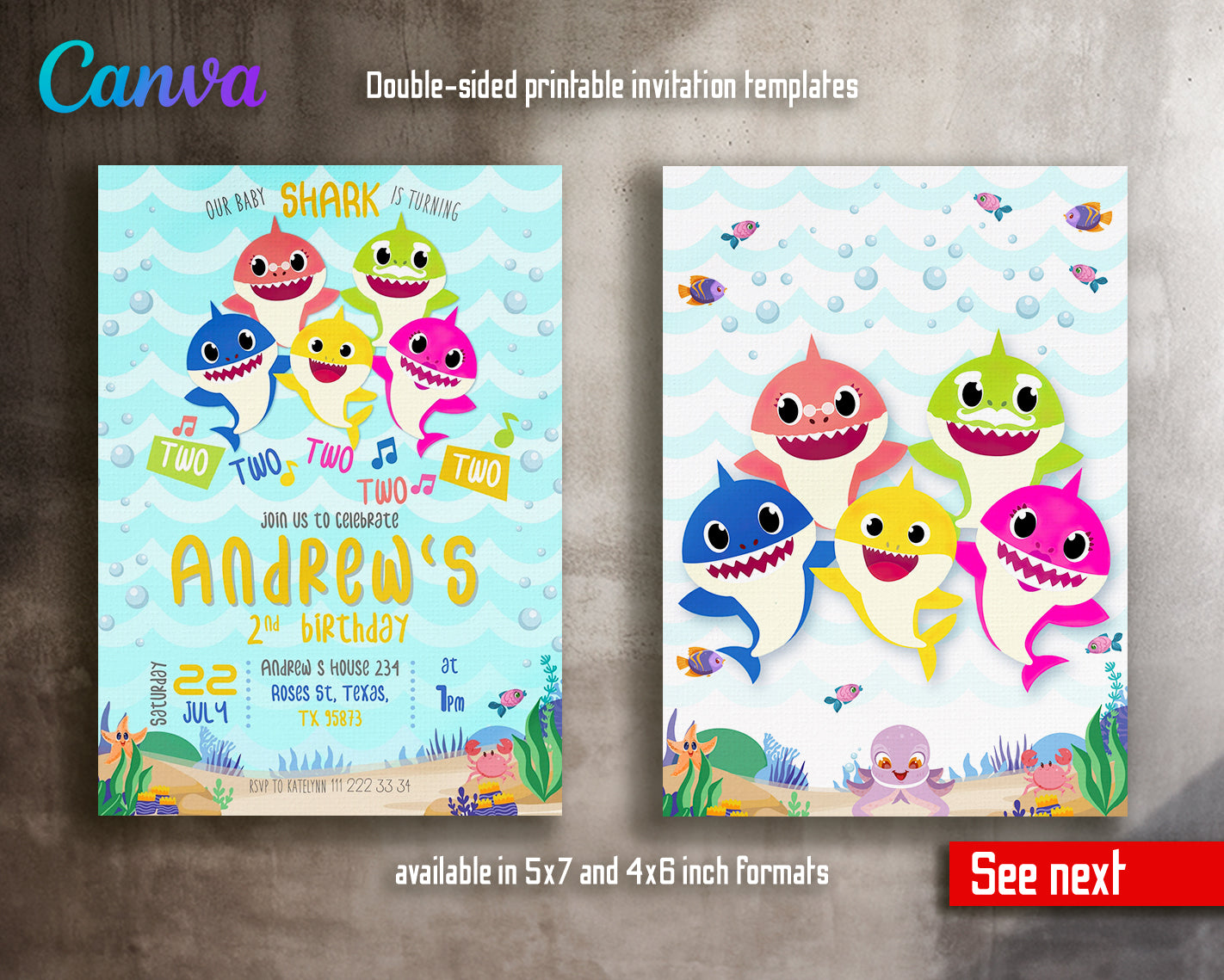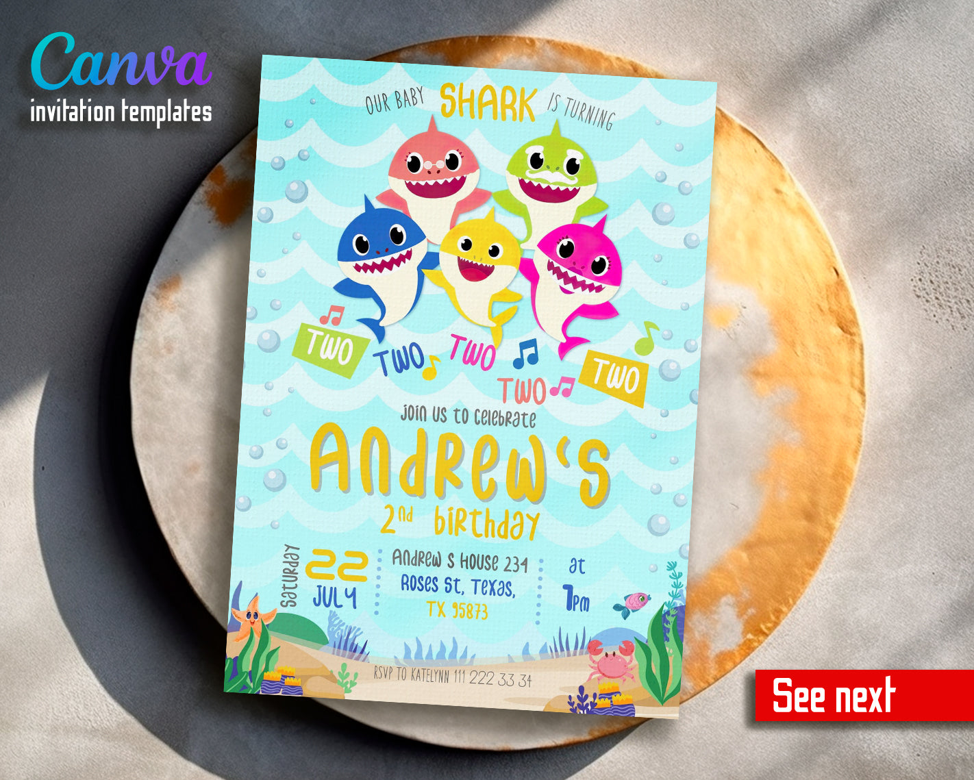 Baby Shark customizable invite template | instant download | Share or Print | PG680
