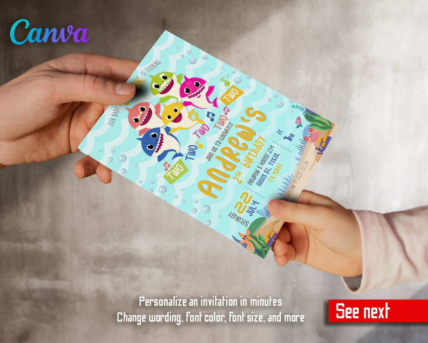 Editable Printable Baby Shark Birthday Invitation, Boy Girl Birthday Invitation, Birthday Invitation For Kid, Baby Shark party invite
