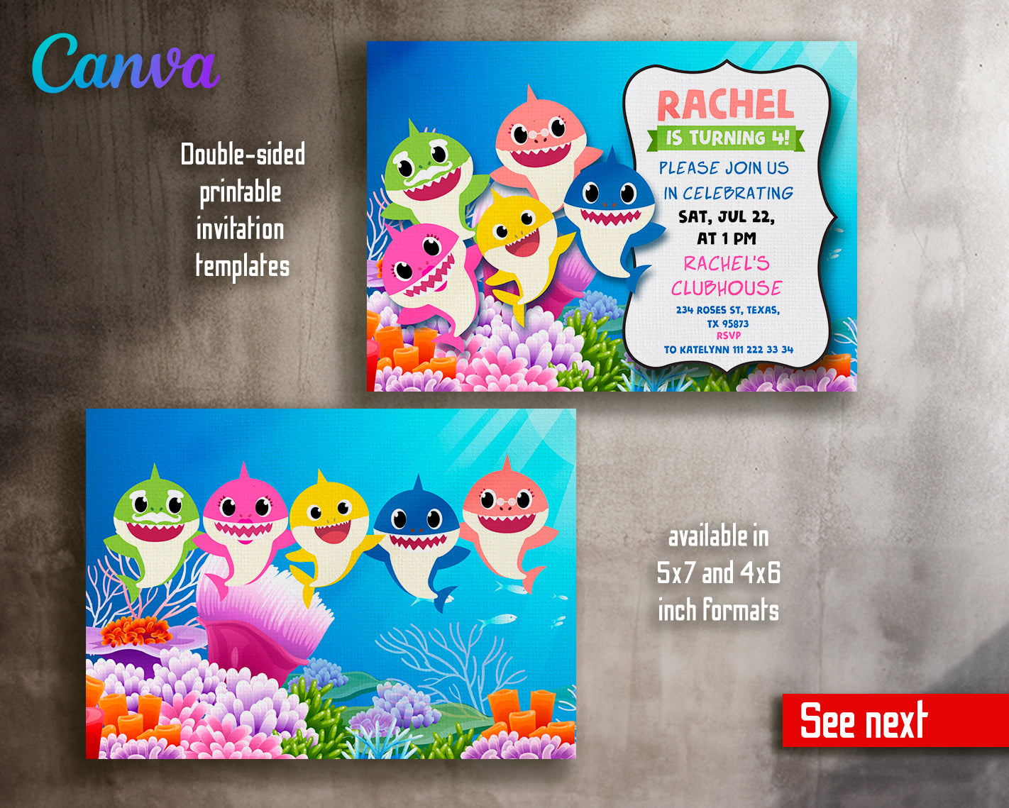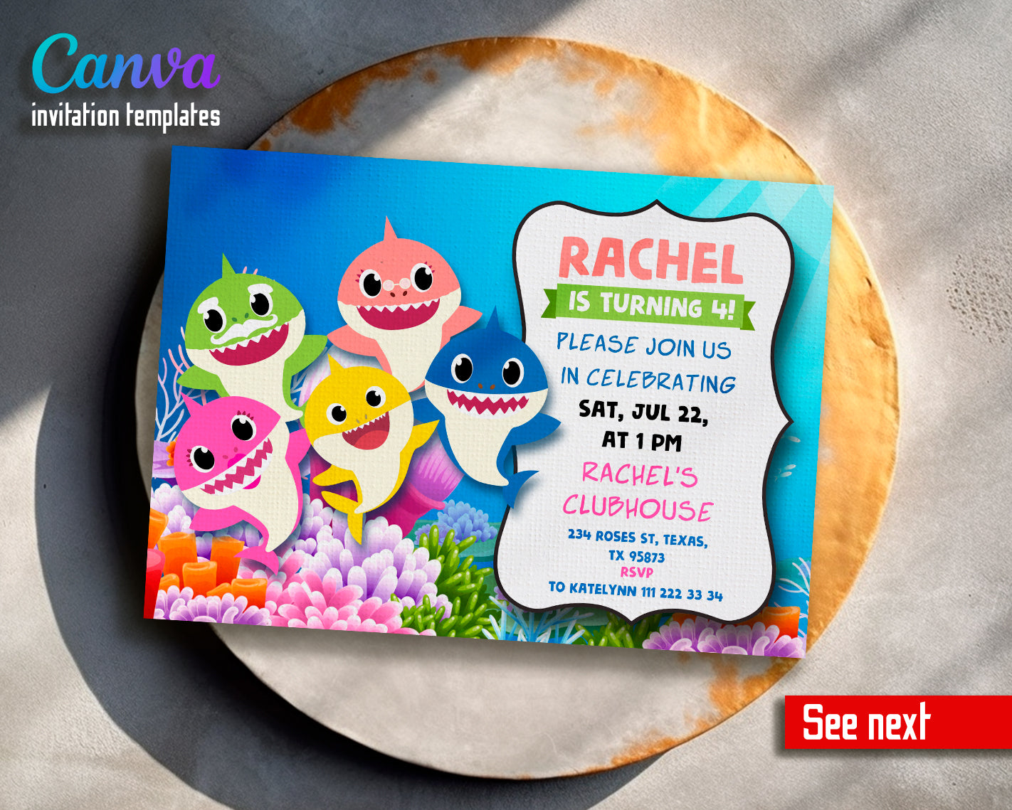 Baby Shark customizable invite template girl | instant download | Share or Print | TG302