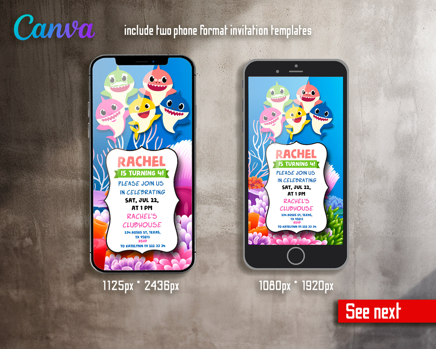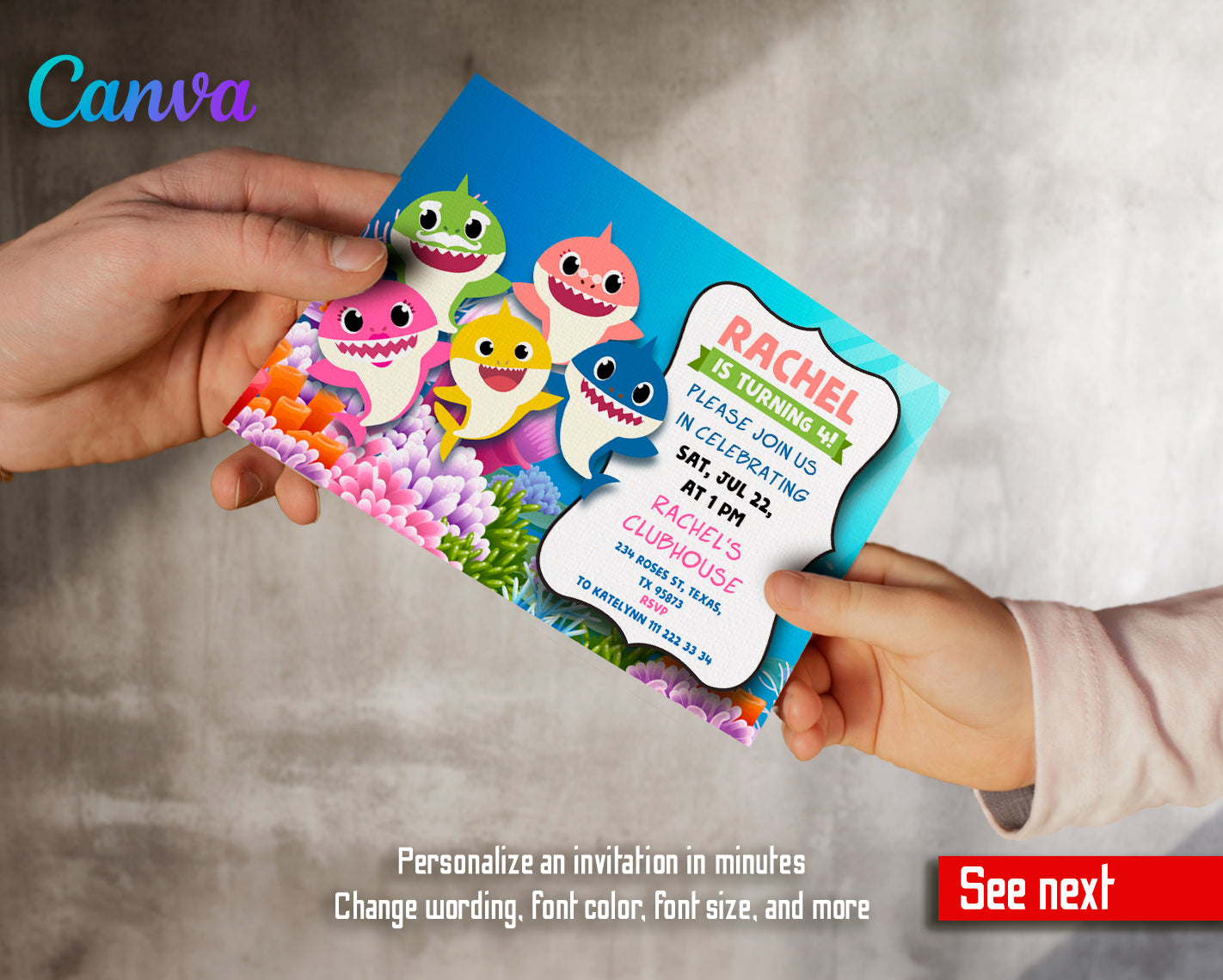 Editable Printable Baby Shark Birthday Invitation, Boy Girl Birthday Invitation, Birthday Invitation For Kid, Baby Shark party invite
