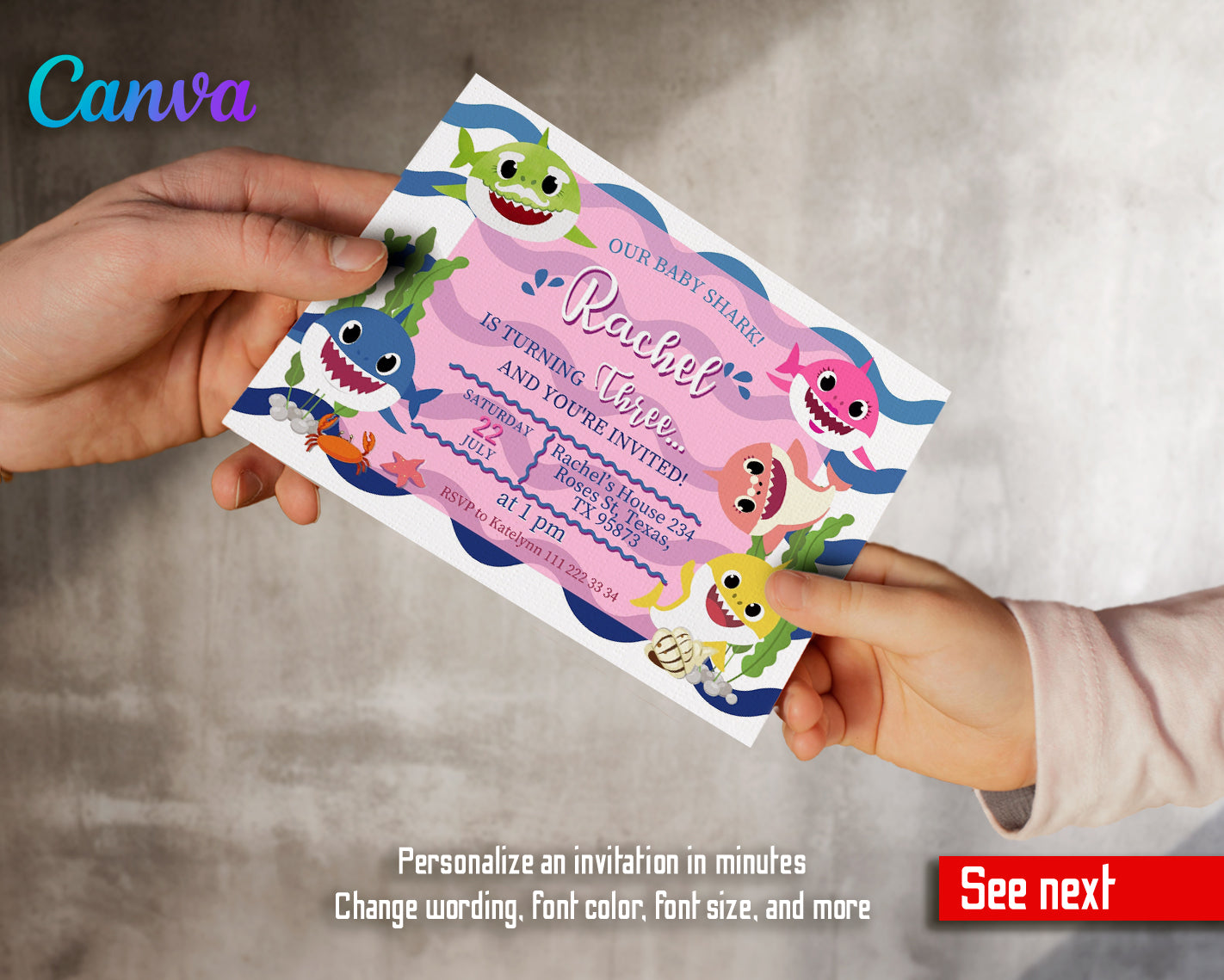 Editable Printable Baby Shark Birthday Invitation, Boy Girl Birthday Invitation, Birthday Invitation For Kid, Baby Shark party invite