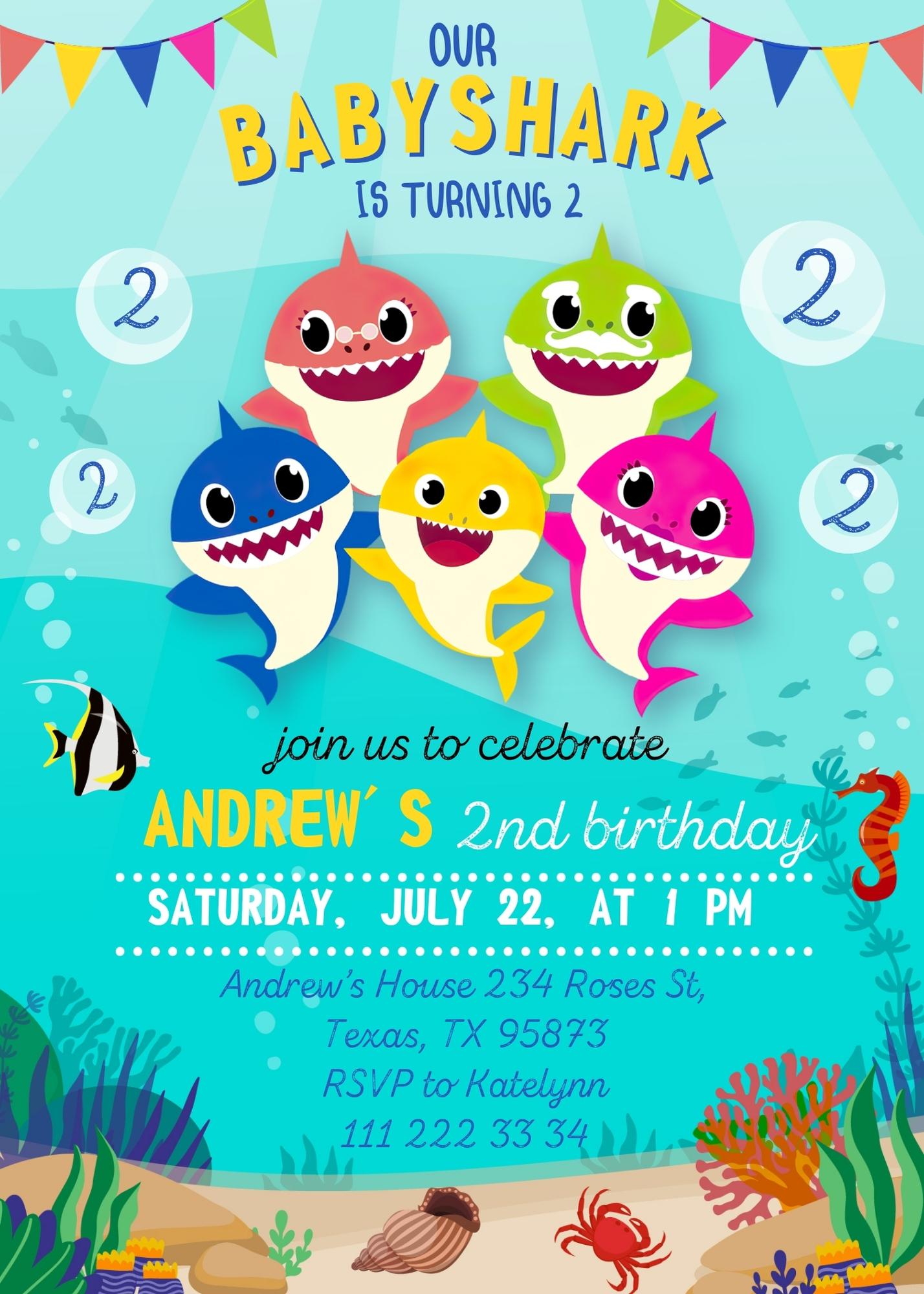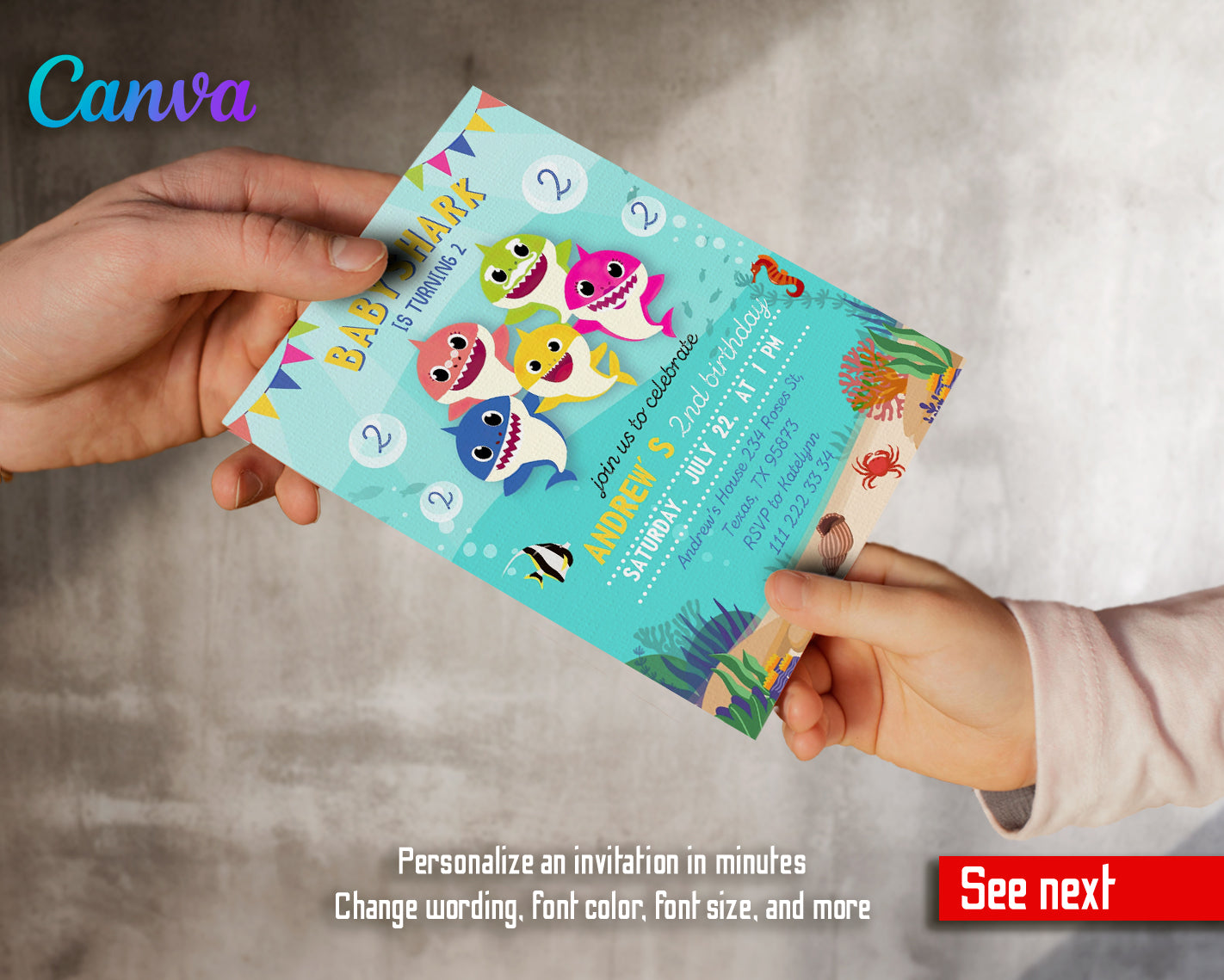 Editable Printable Baby Shark Birthday Invitation, Boy Girl Birthday Invitation, Birthday Invitation For Kid, Baby Shark party invite