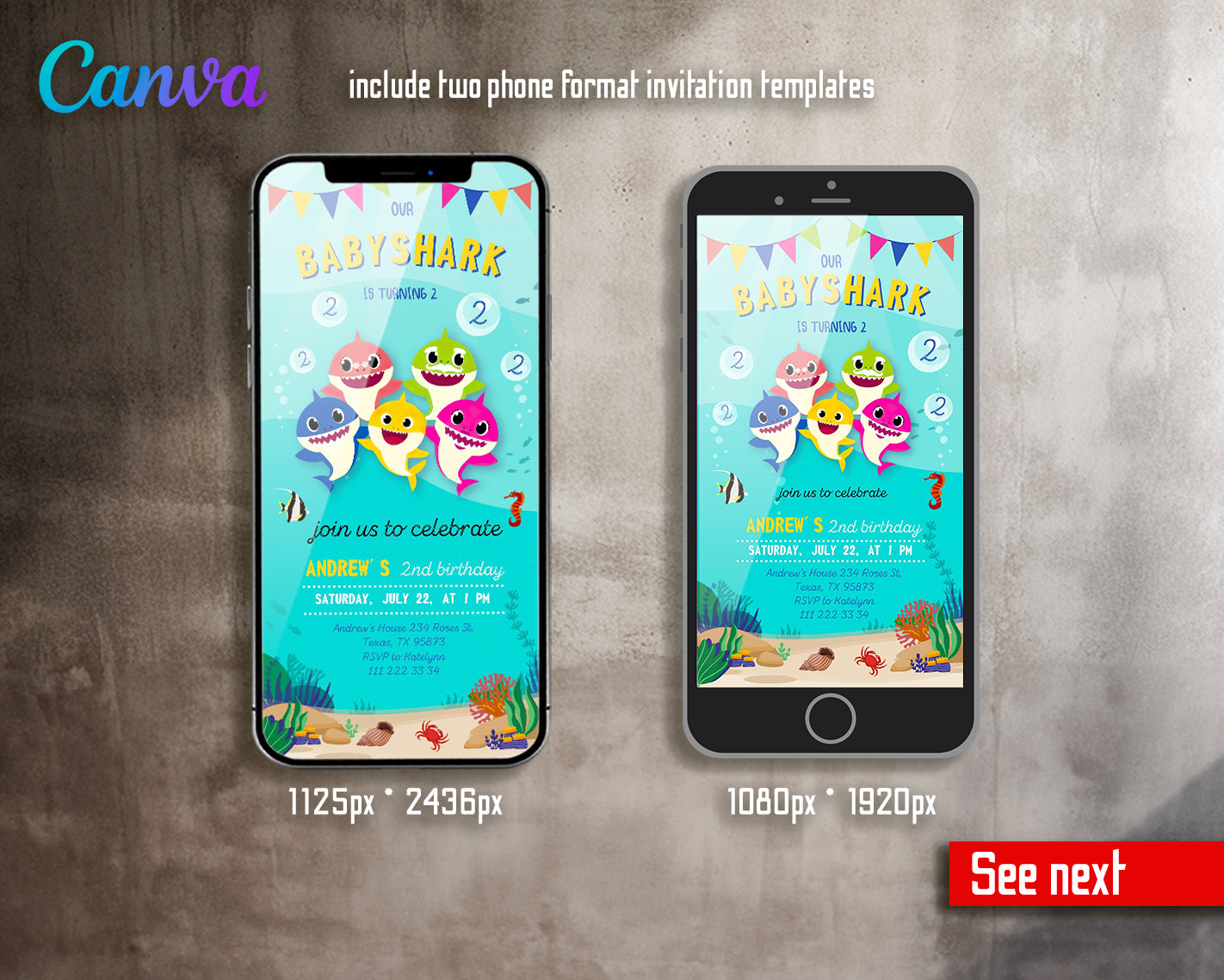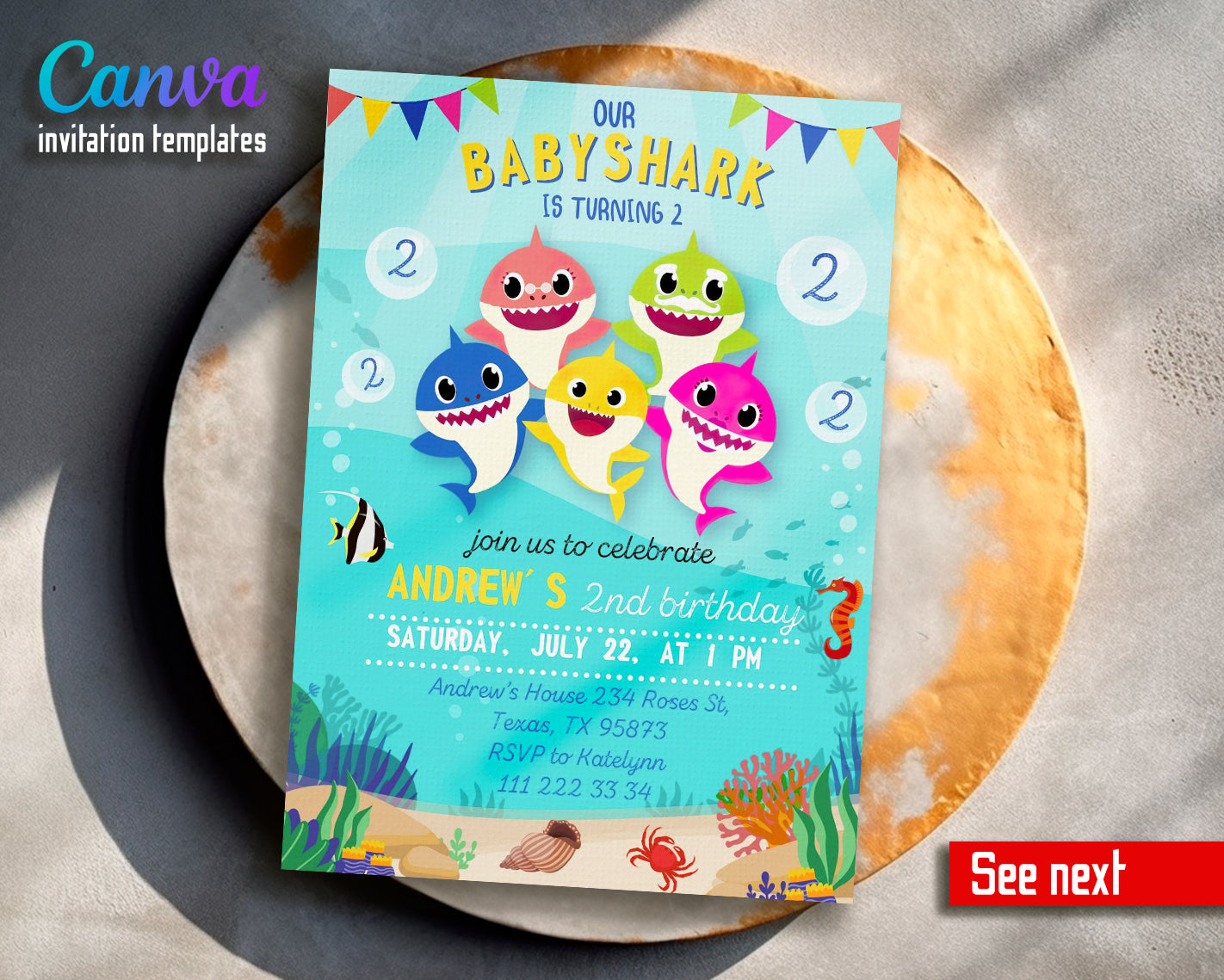 Baby Shark customizable invite template | instant download | Share or Print | UX227