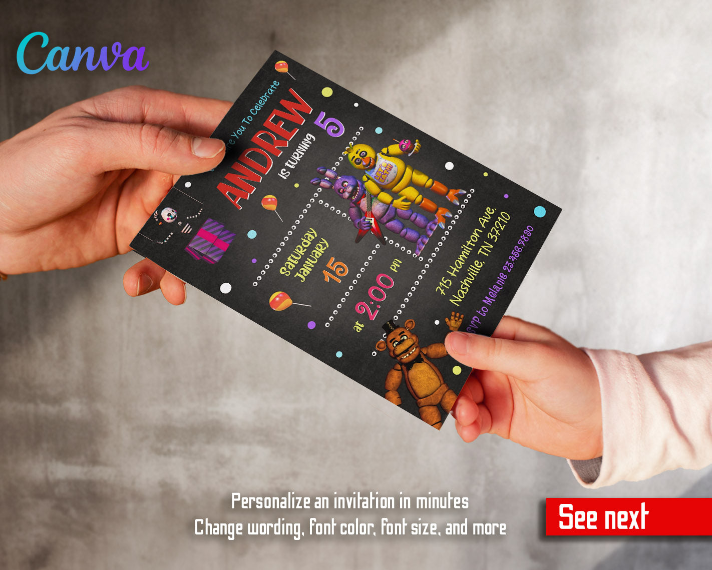Printable Editable customizable Five Nights at Freddy's birthday party invitation digital template. Instant download invite.