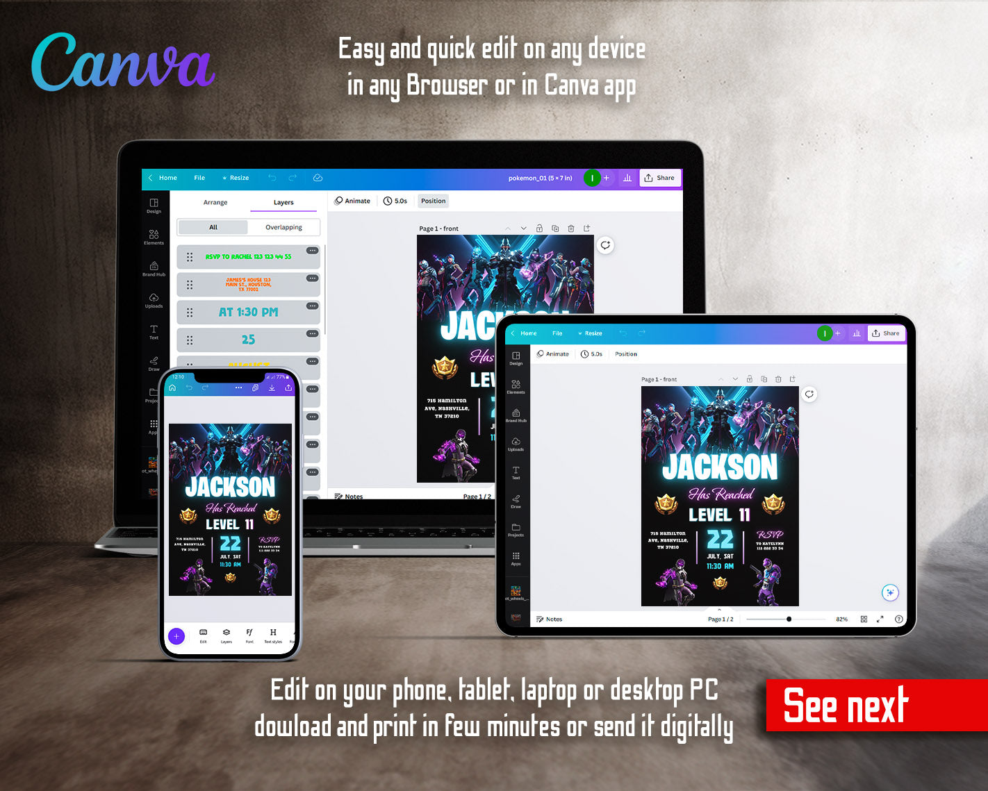 Related Tags: fortnite invitation, birthday invite, battle royale invite, fortnite marshmello, fort nite party, video game invite, editable invitation, birthday invitation, printable invitation, gamer invitation, battle bus, fortnites llama, boy birthday