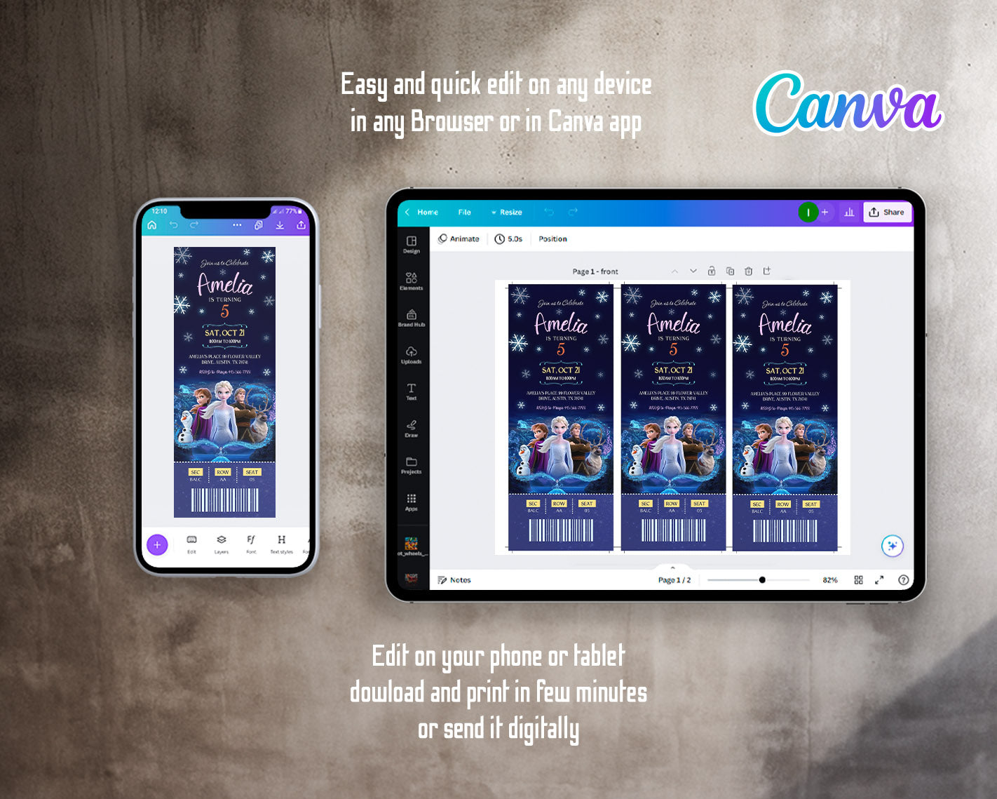 All the invitations are for self-editing. You will edit your template in Canva. It’s easy whether you're using the web browser or the app.