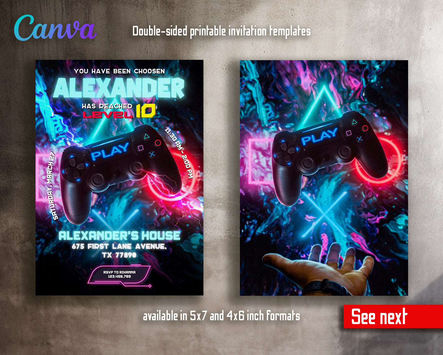 Printable Editable customizable Gamer Party birthday party invitation digital template. Instant download invite.