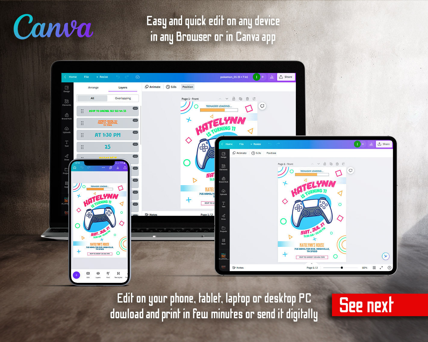 Related Tags: gamer invitation, game birthday, player invite, play invitation, gamer party, digital invite, editable invitation, birthday invitation, printable invitation, invite template, evite, girl birthday, boy birthday